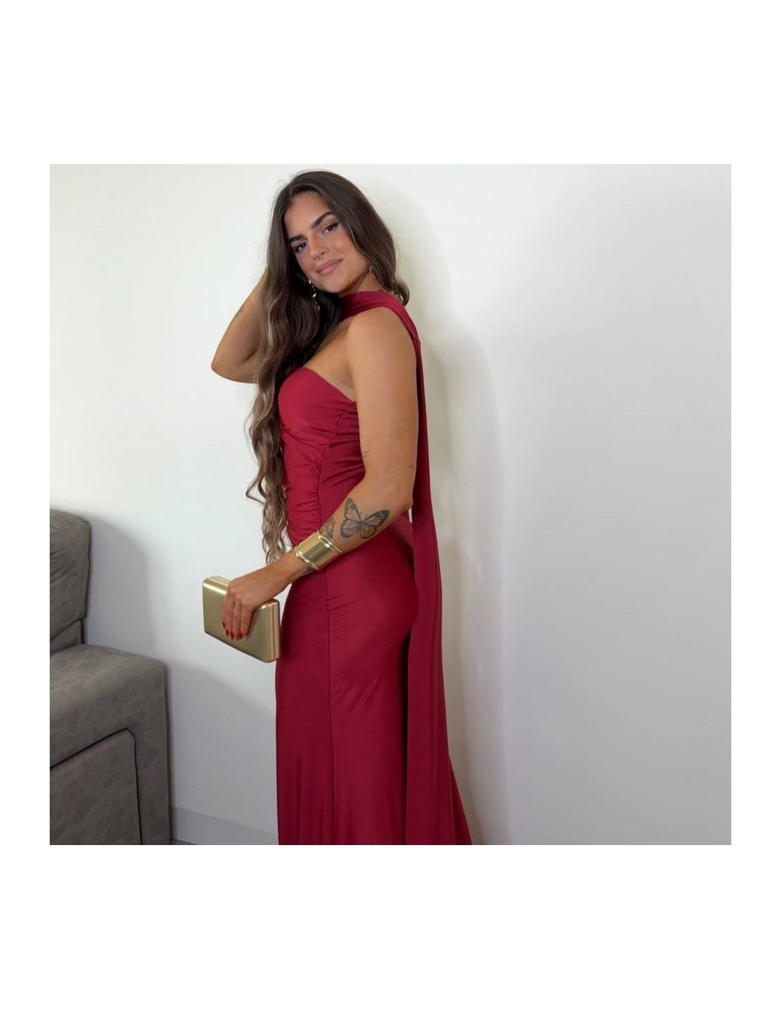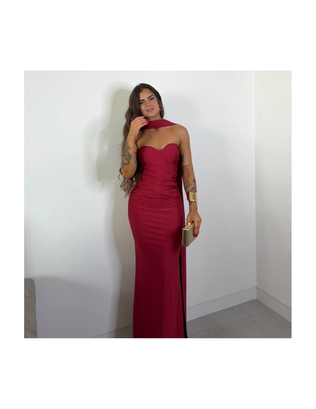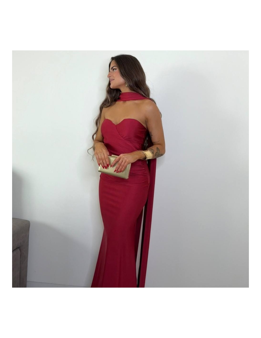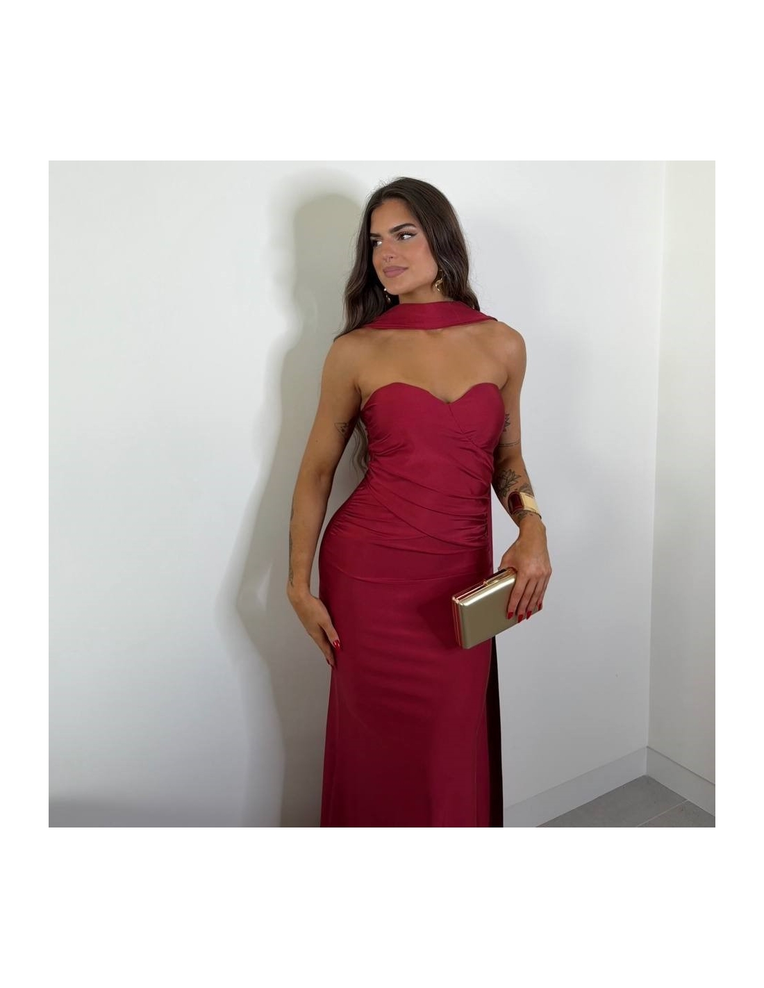 Vestido gargantilla de palabra de honor. Fruncido delantero. Talla única.