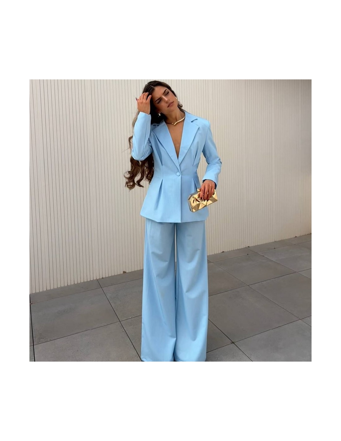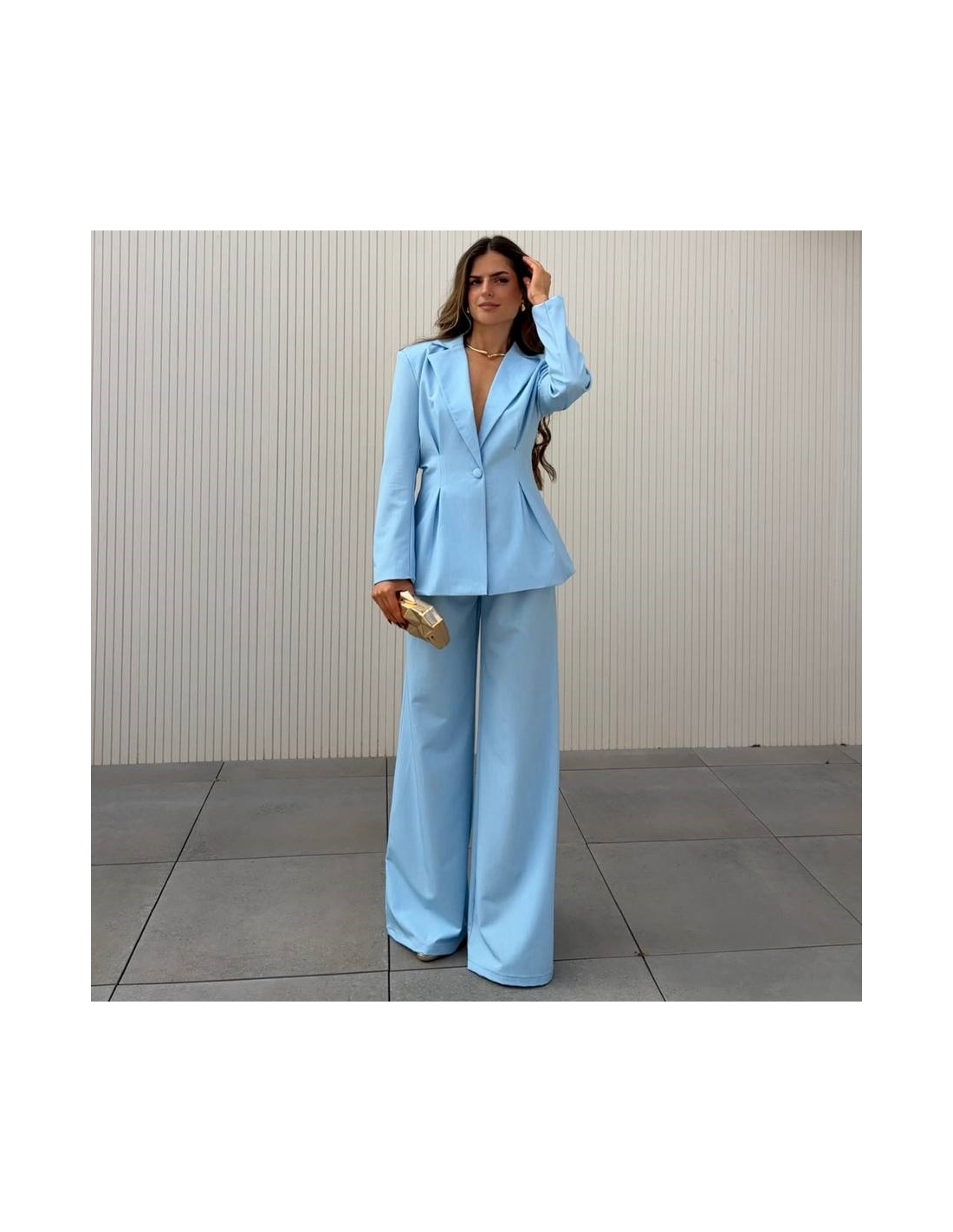 Conjunto traje dos piezas blazer con hombreras y pinzas entallada en la cintura y abotonada + pantalón de tiro alto y cintura elástica. Talla única. CALIDAD +++++