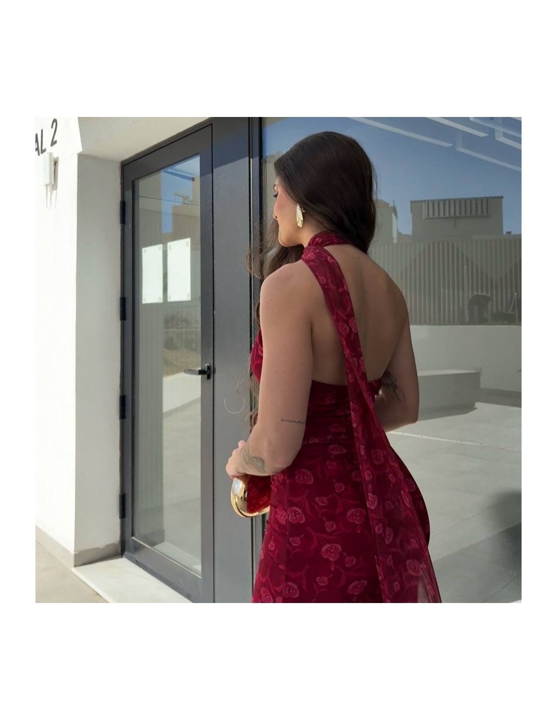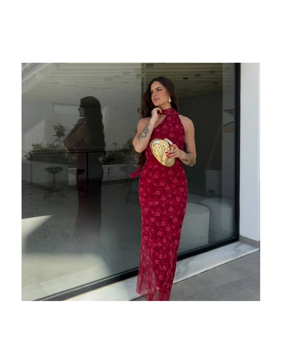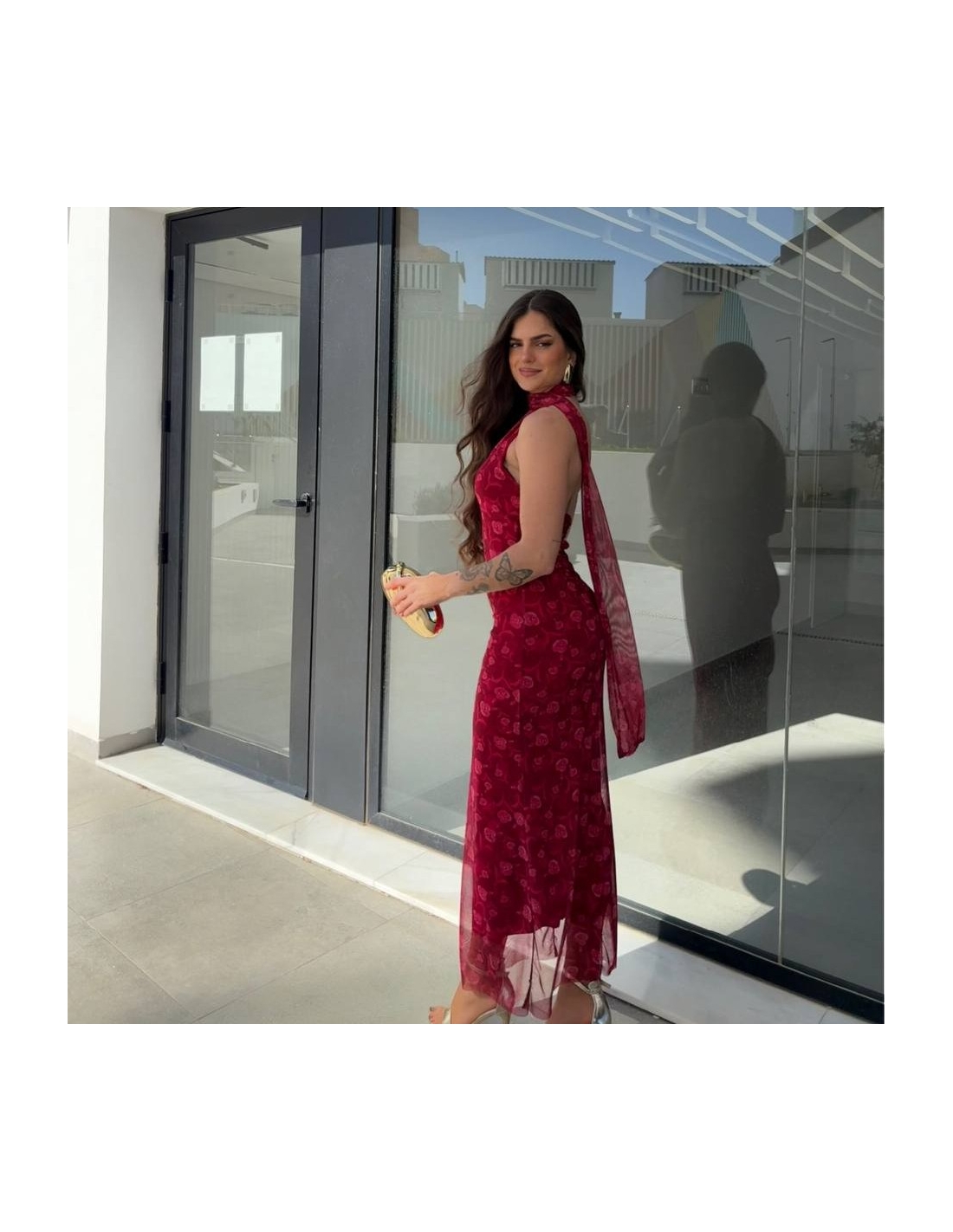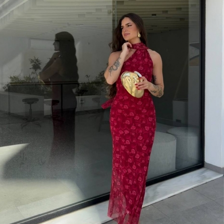 Vestido de tul estampado con forro interior a tono. Con lazada. Elástico. Talla única