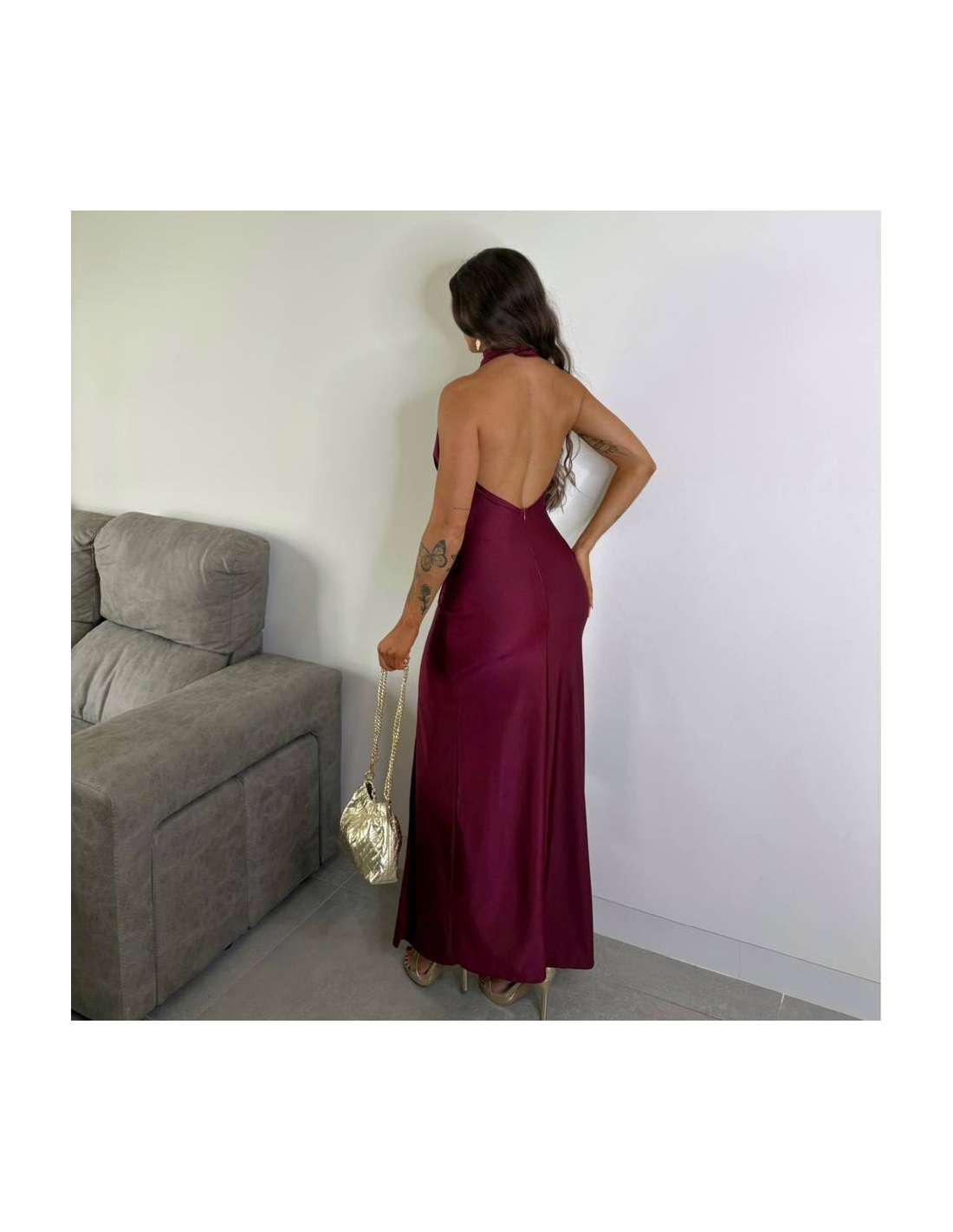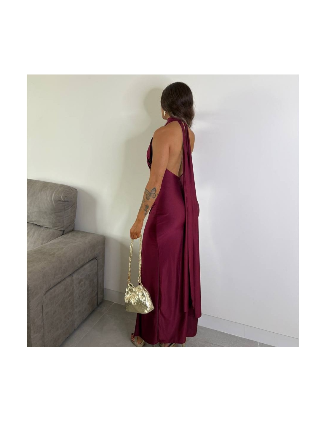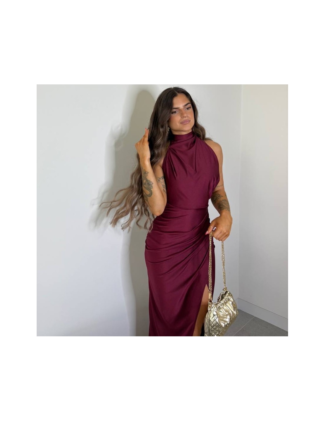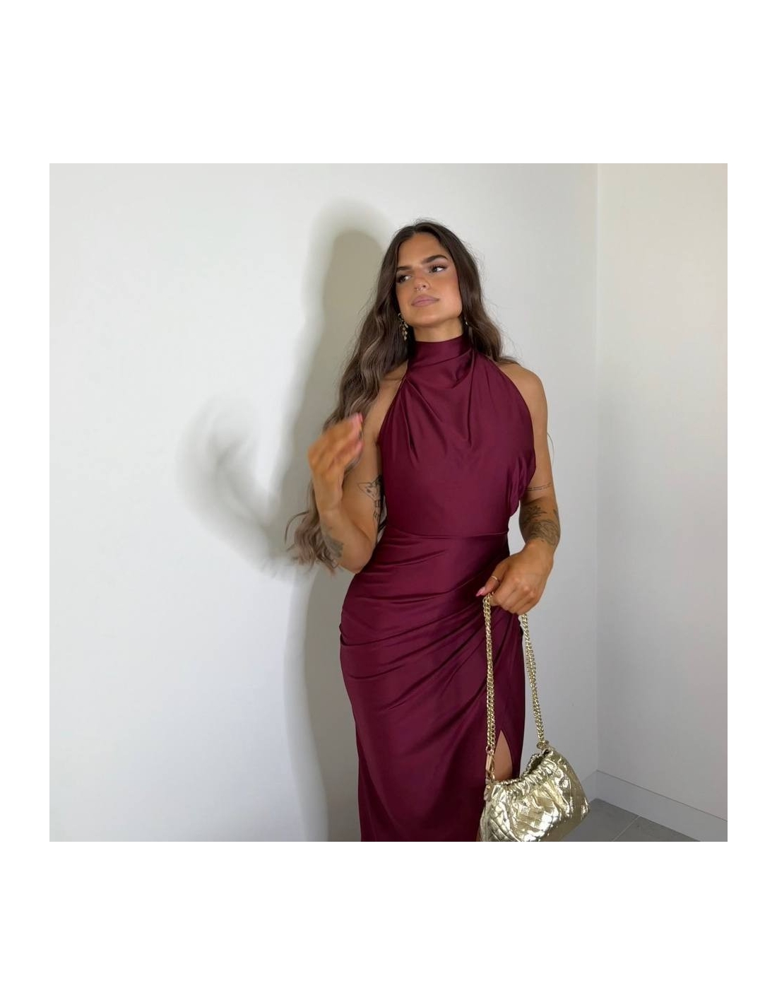 VESTIDO HALTER BURDEOS