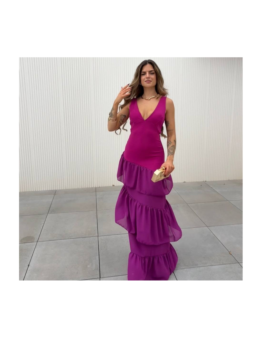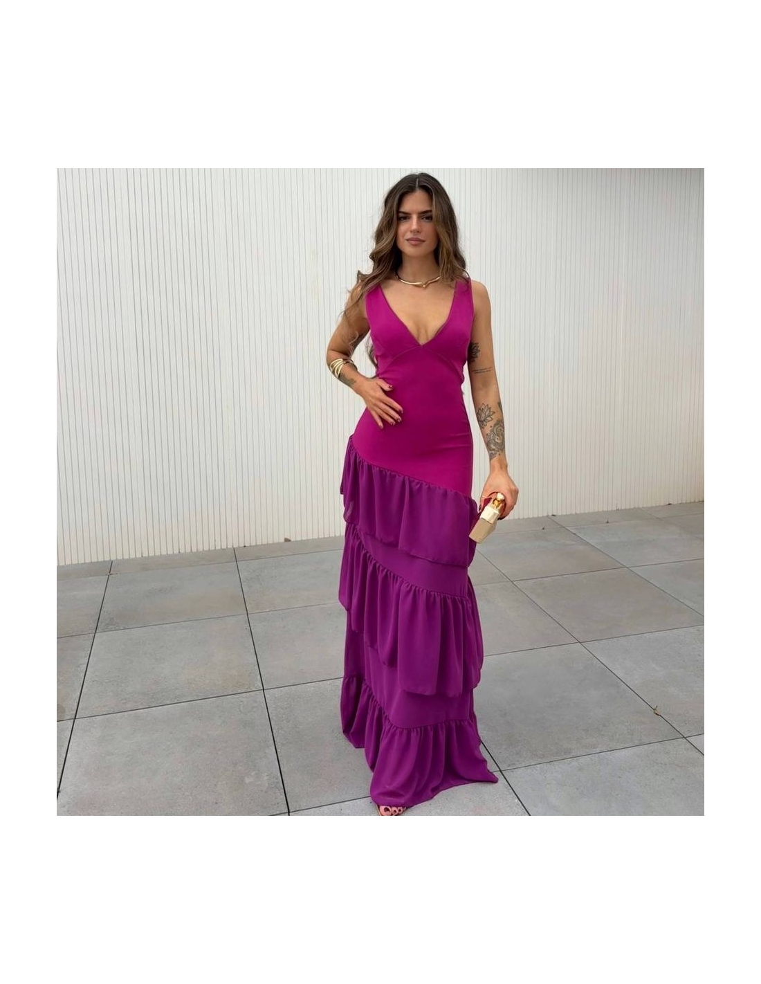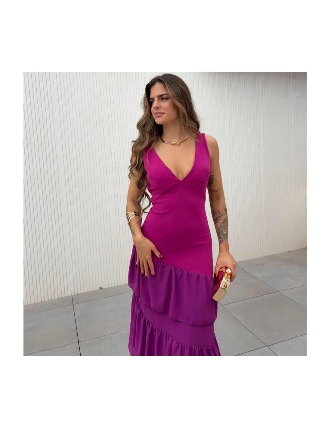 VESTIDO ESPALDA CRUZADA VOLANTES BUGANVILLA