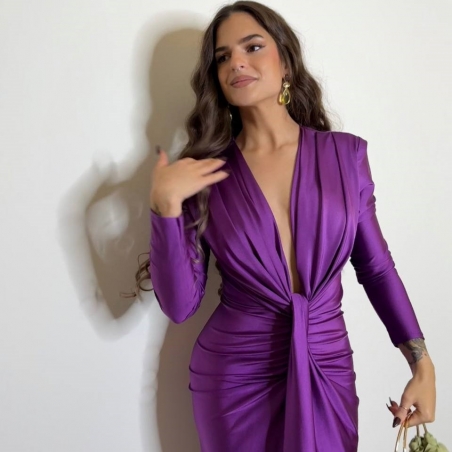 VESTIDO NUDO MANGA MORADO