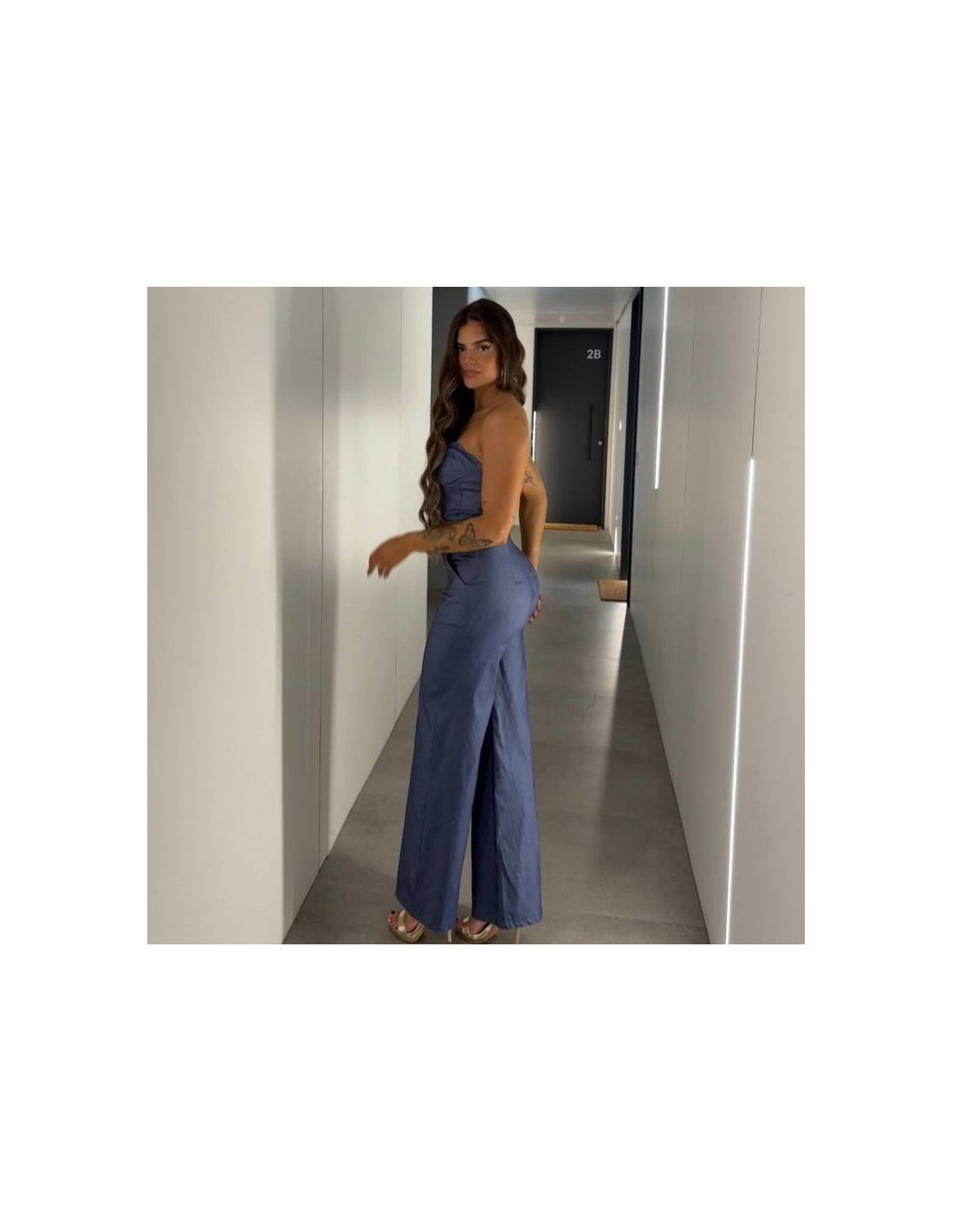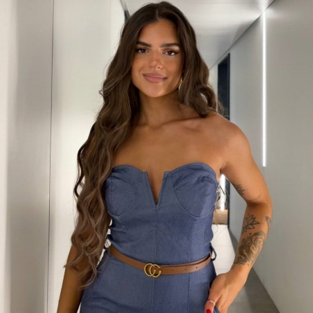 Mono escote v con cinturón incluído. Cremallera trasera oculta. Corte recto. Talla única.