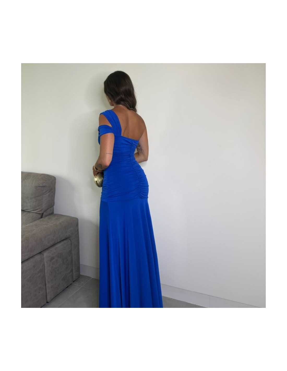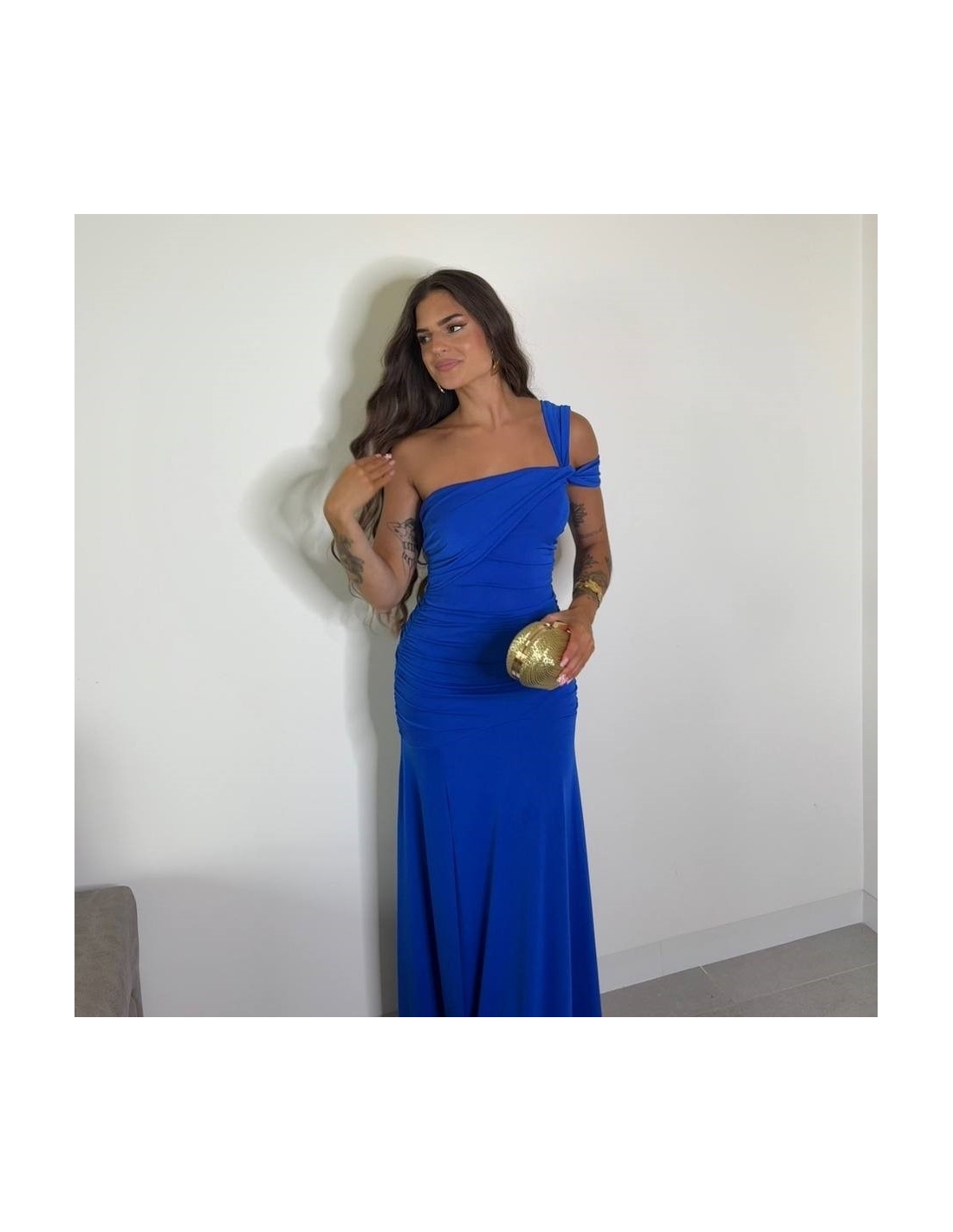 Vestido bella largo. Escote asimétrico. Fruncido en parte central. Fluido en bajo. Doble tejido. Talla única