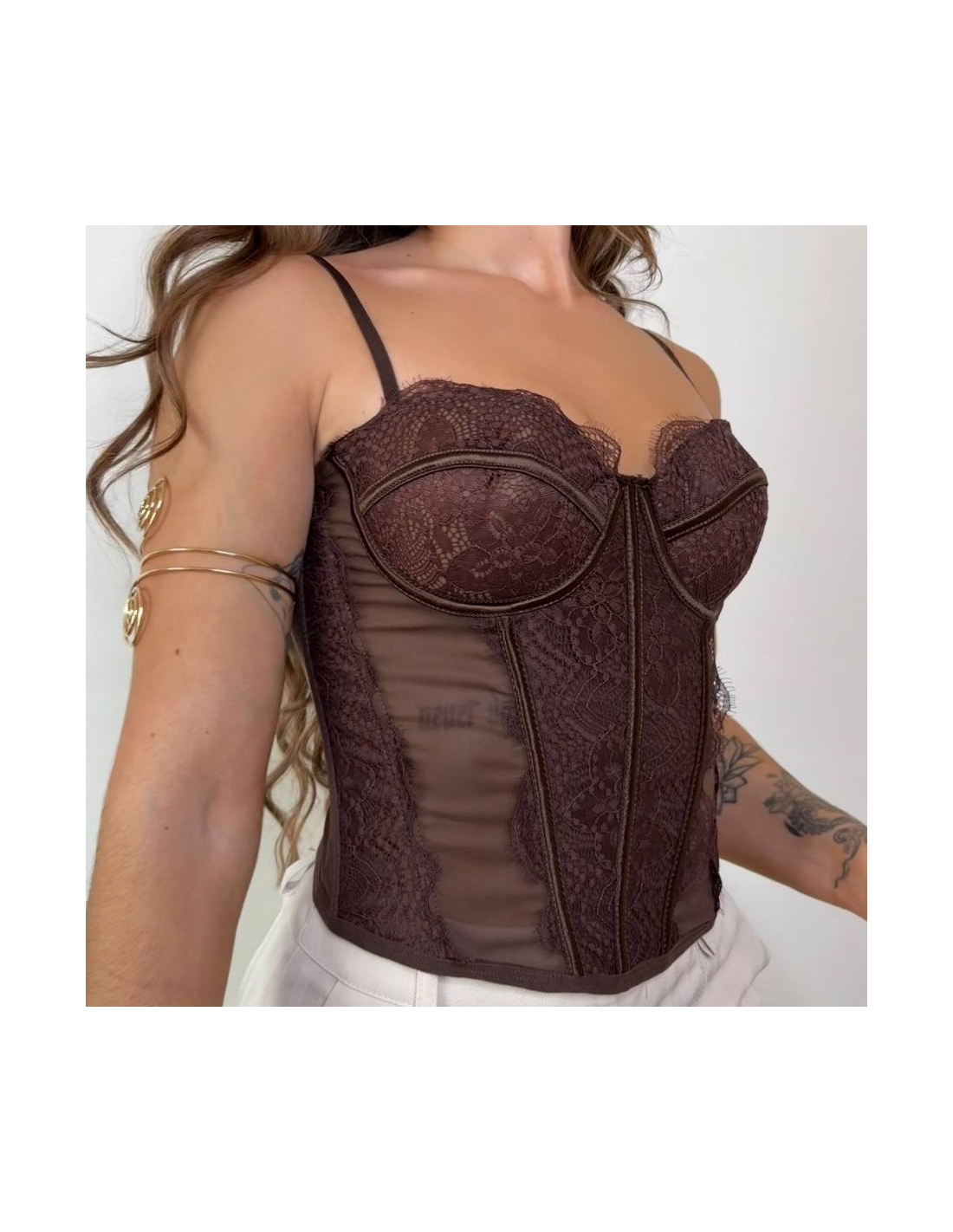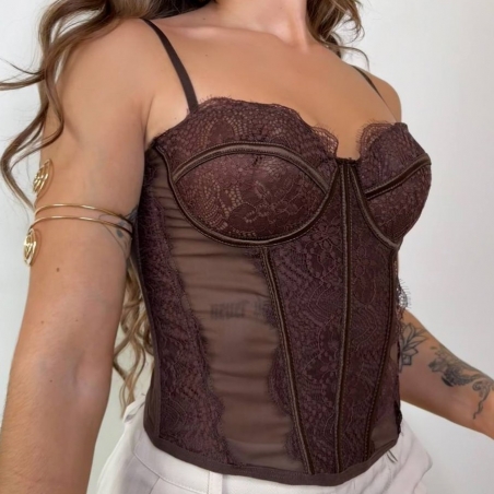 CORSET ENCAJE CHOCO