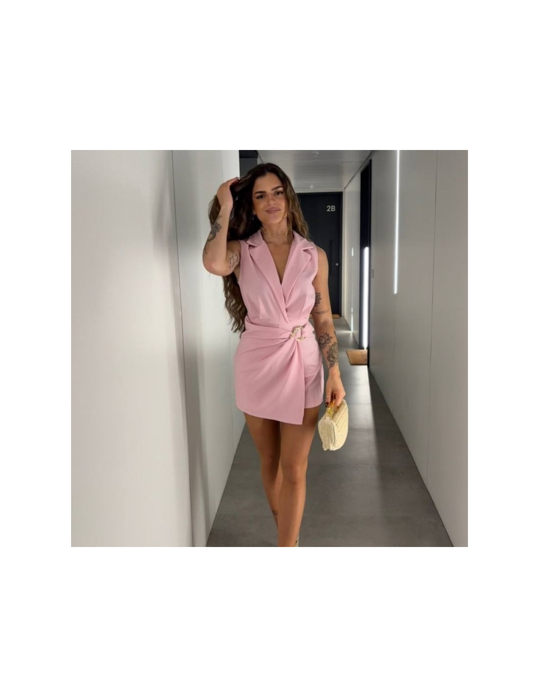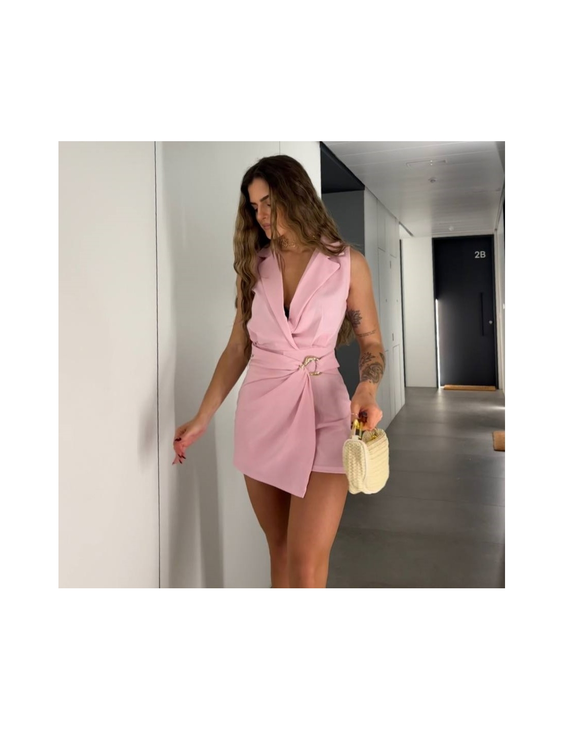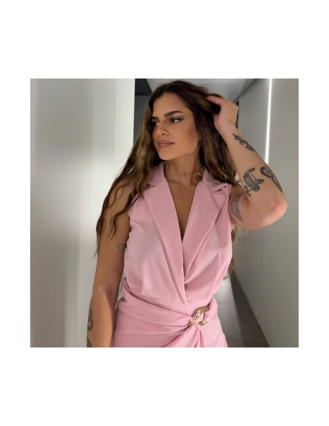 Mono corto hebilla dorada. Cuello de solapa. Talla única.
