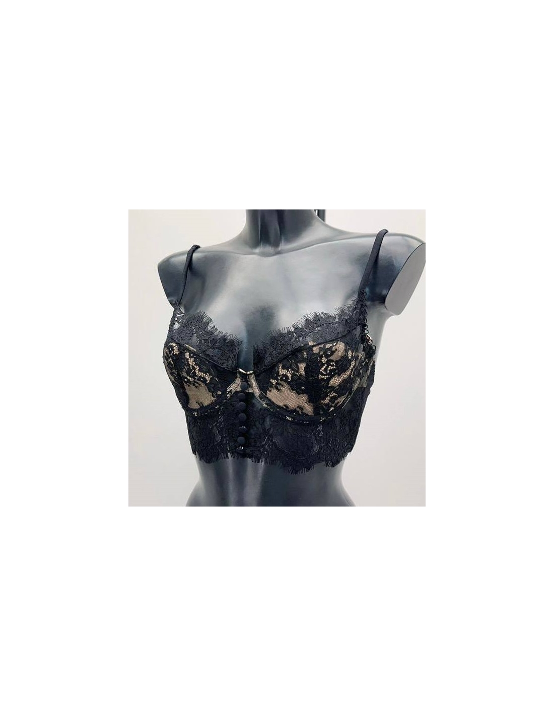 Top lencero encaje con tiranta fina regulable y cierre trasero con corchetes. Talla única.
