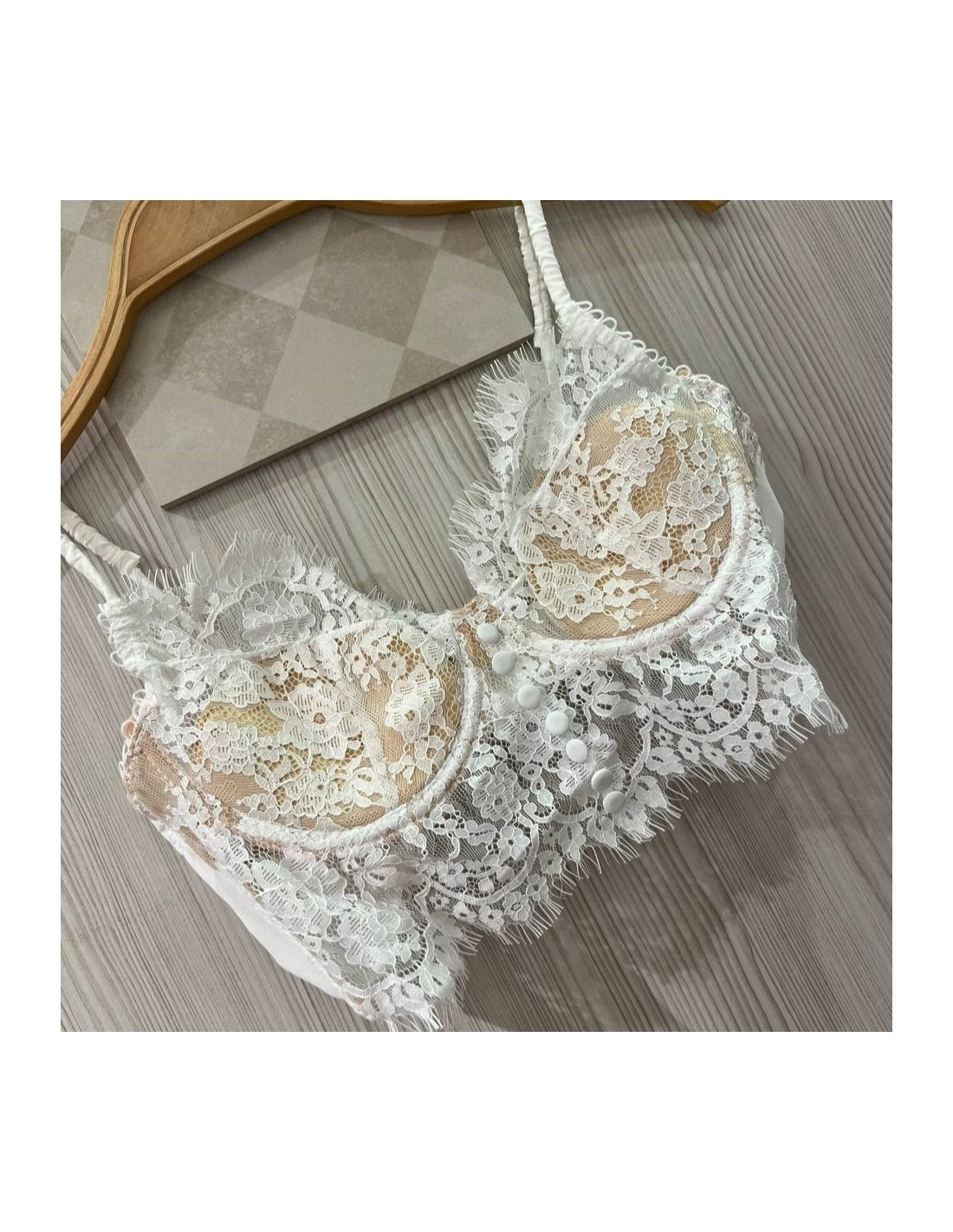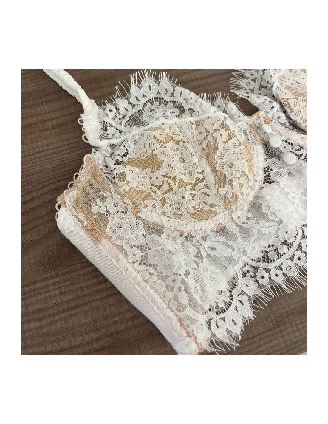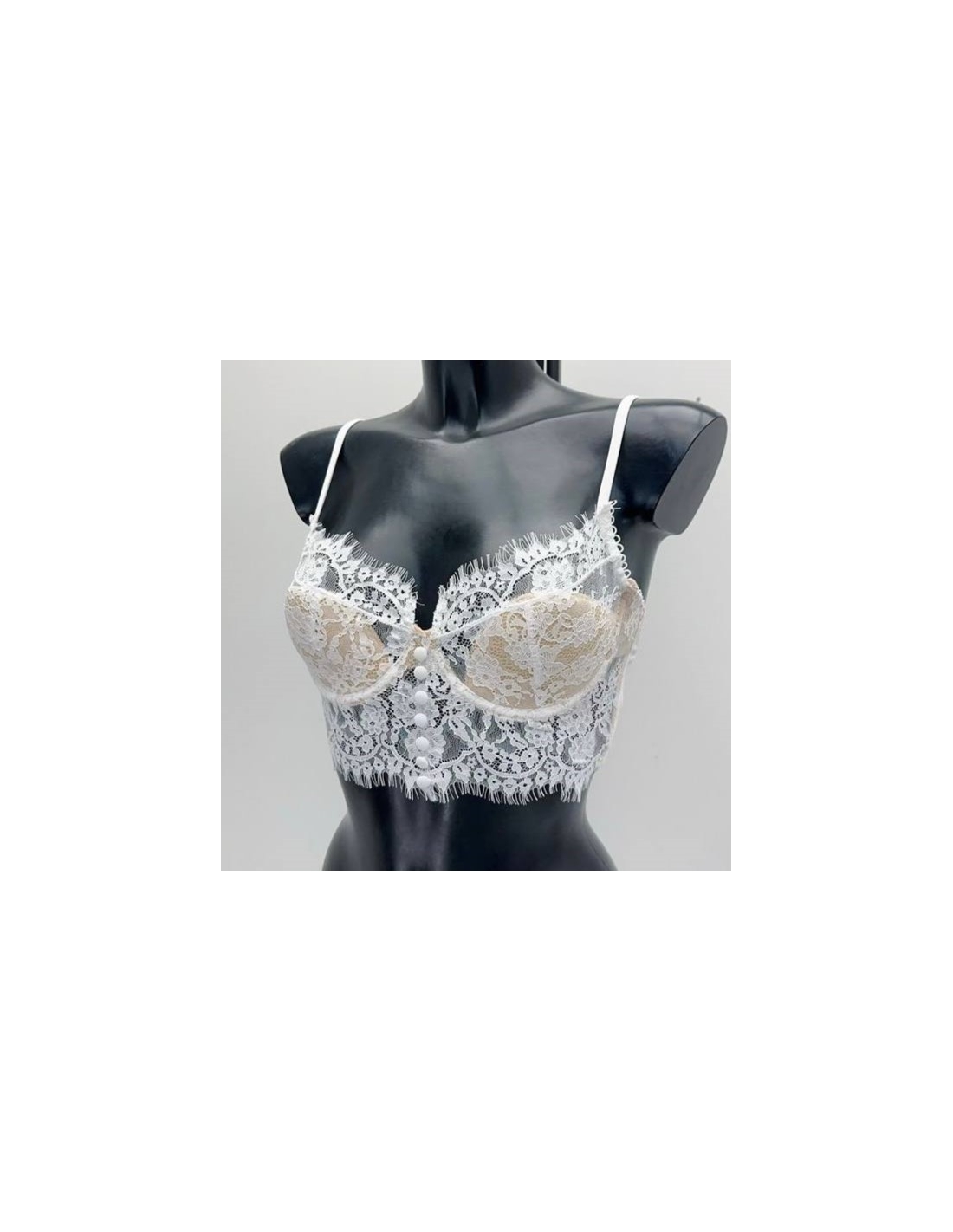 Top lencero encaje con tiranta fina regulable y cierre trasero con corchetes. Talla única.