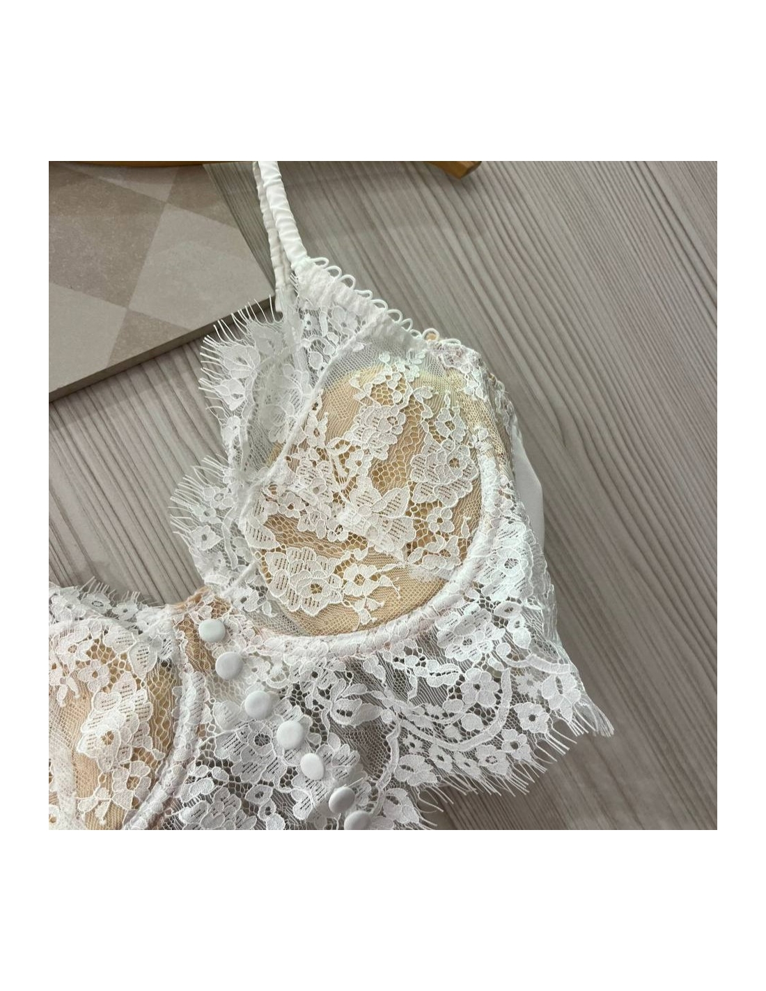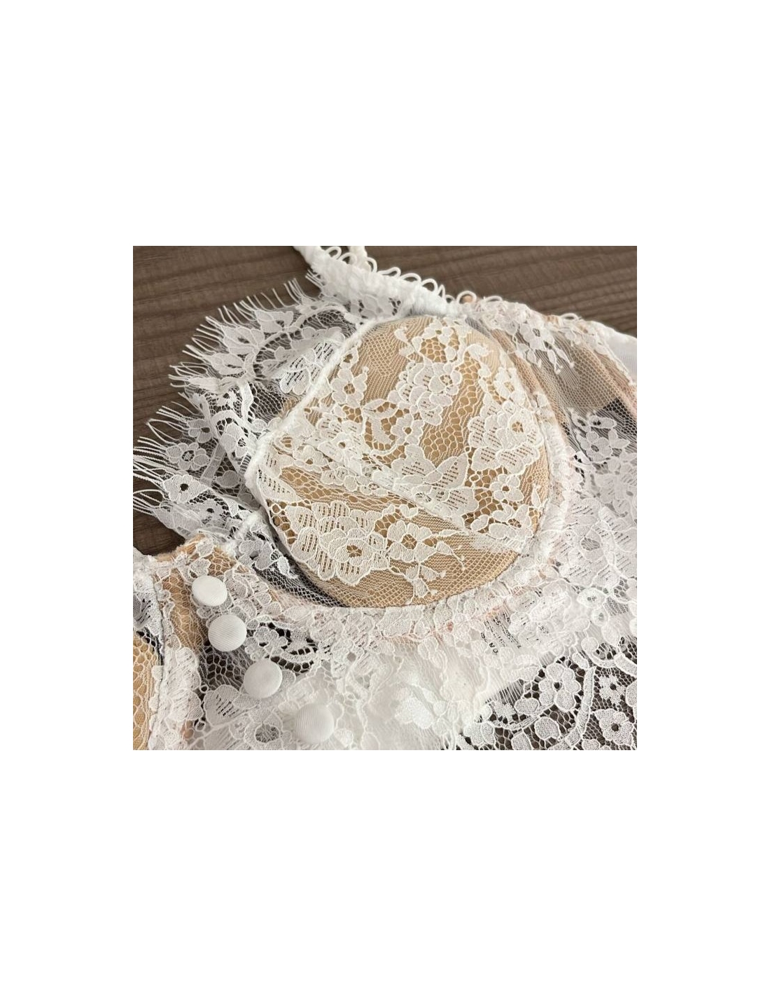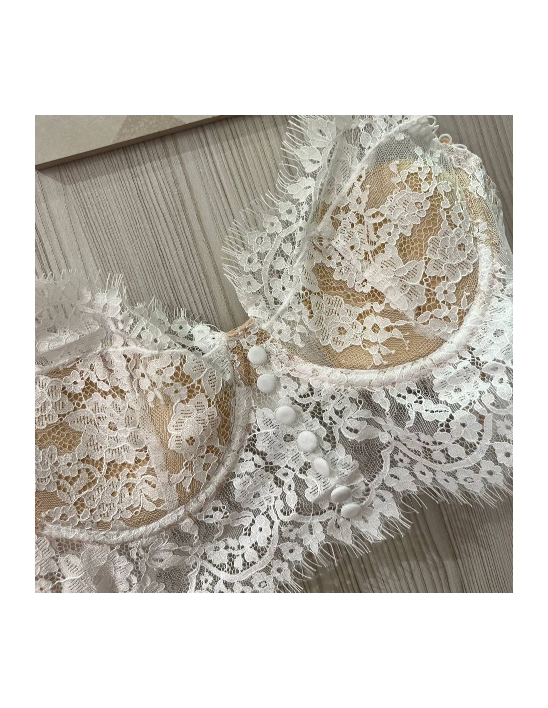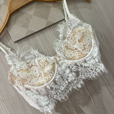 Top lencero encaje con tiranta fina regulable y cierre trasero con corchetes. Talla única.