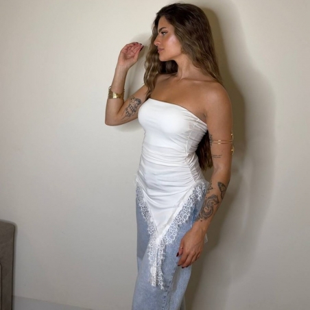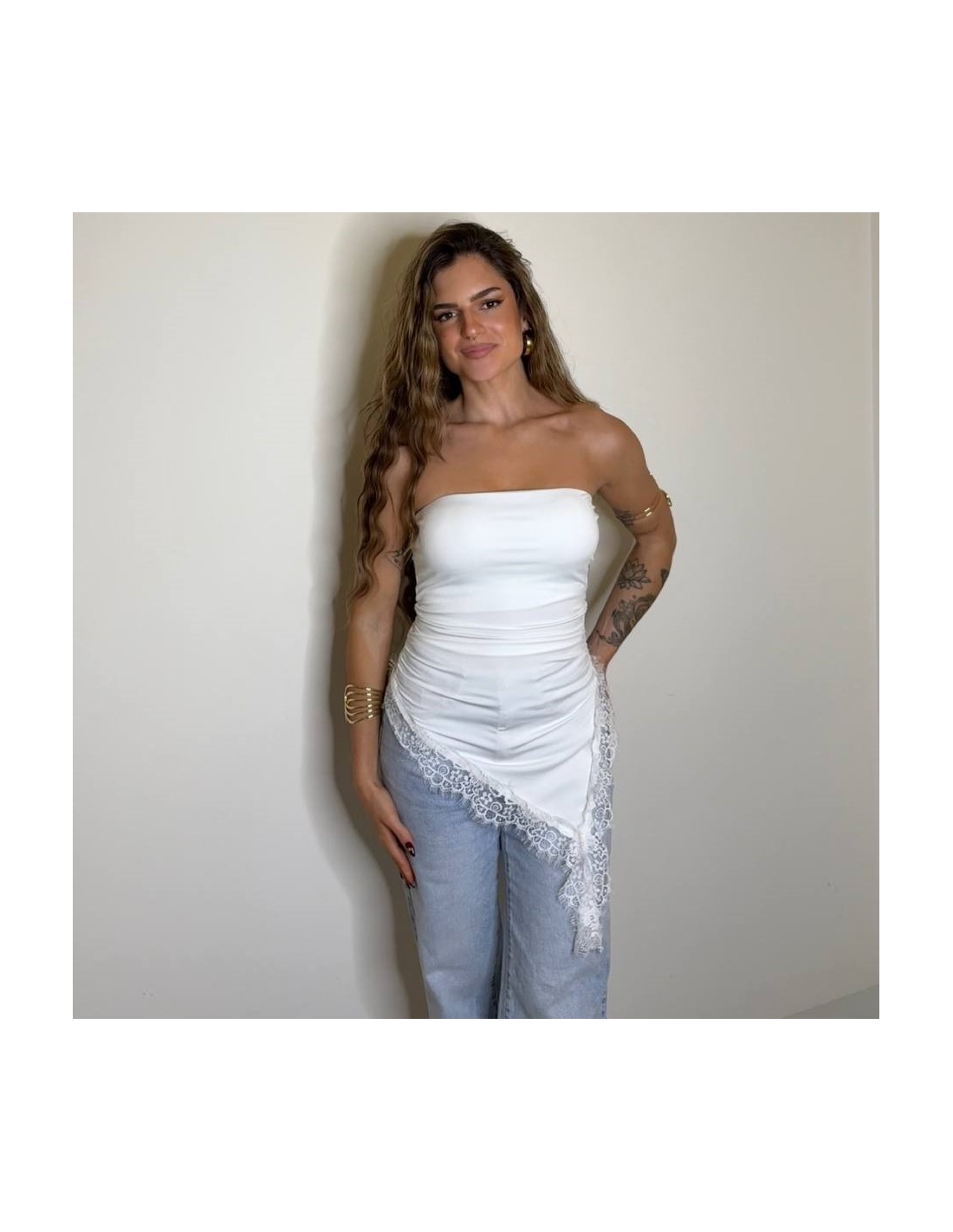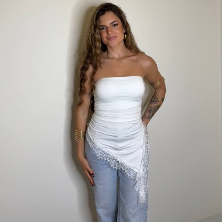 TOP ASIMÉTRICO ENCAJE BLANCO