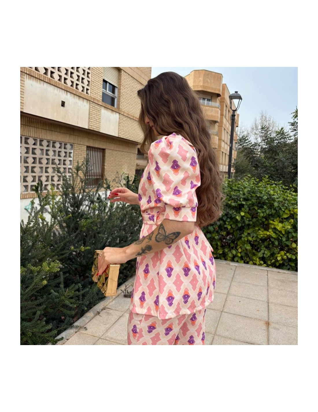Conjunto estampado de manga abullonada. Talla única.