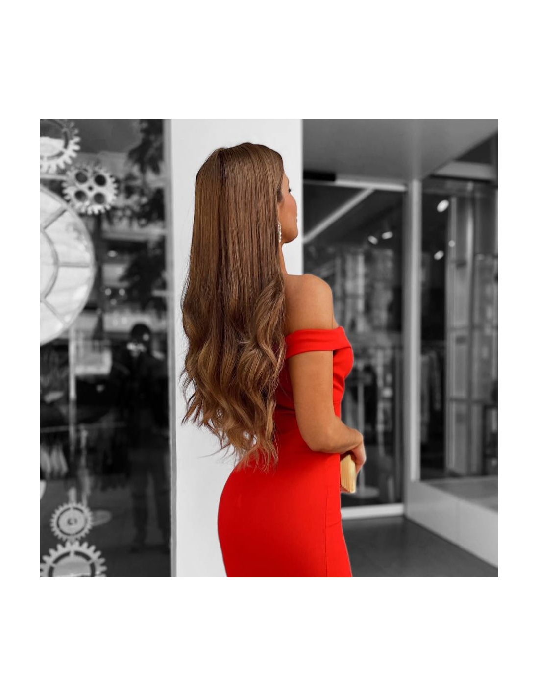 VESTIDO ESCOTE BARCO ROJO