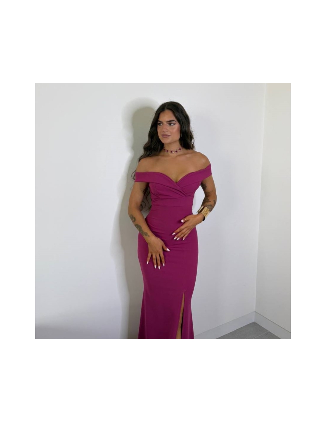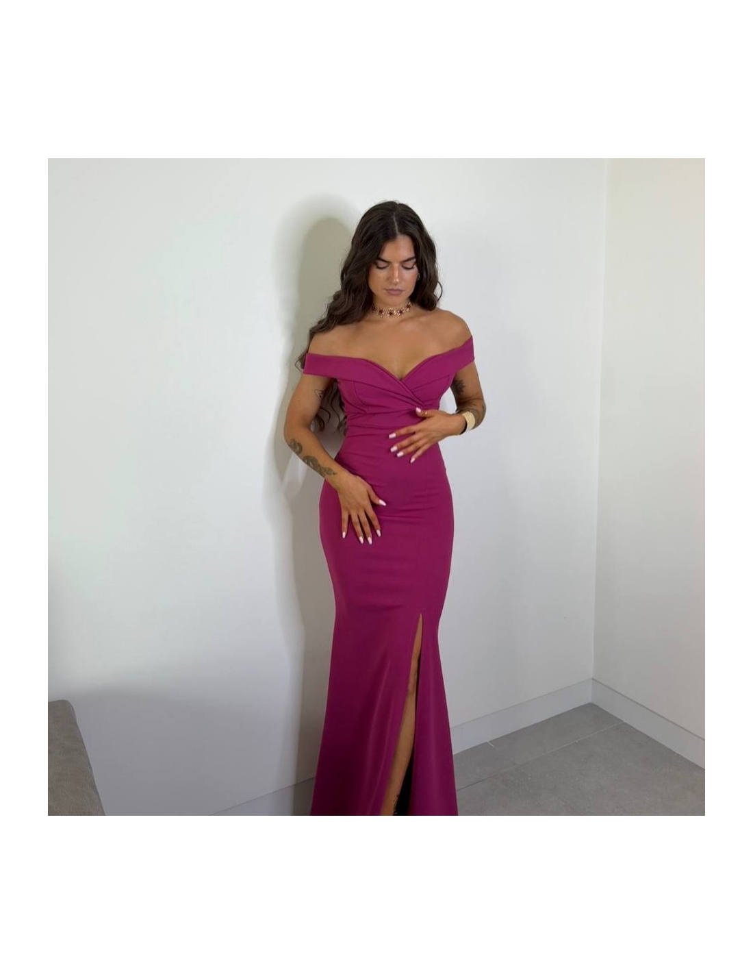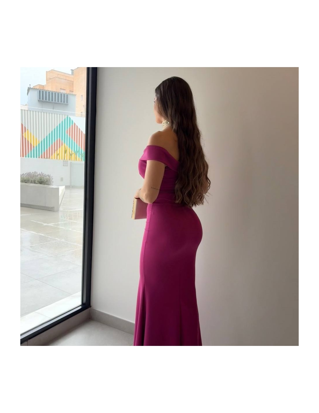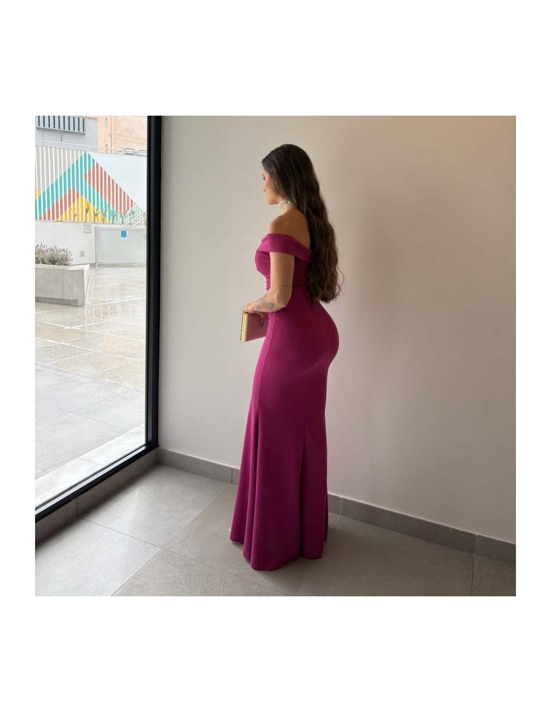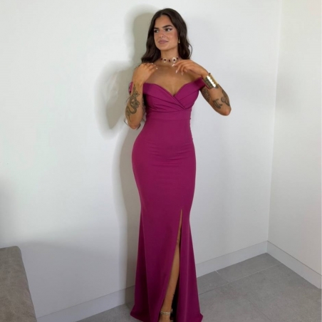 VESTIDO ESCOTE BARCO MAGENTA