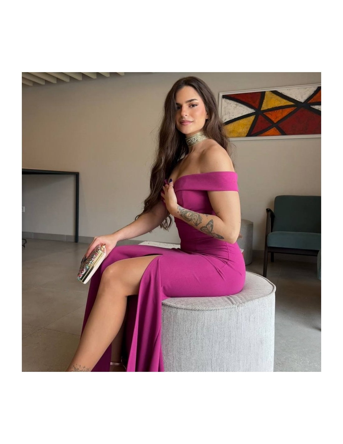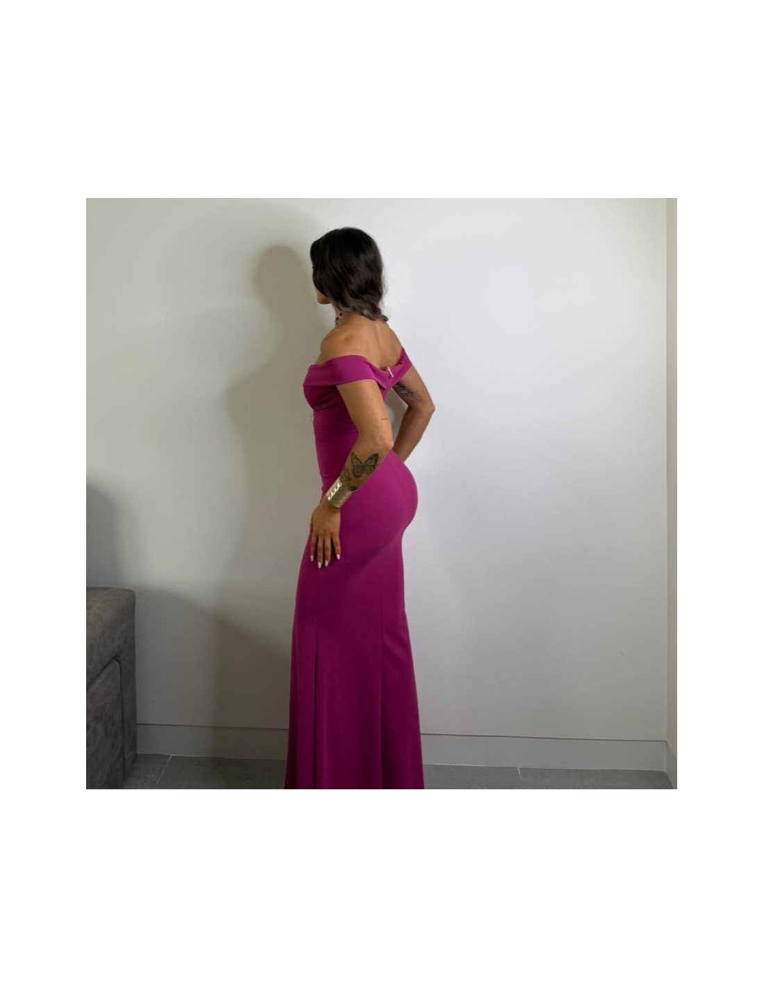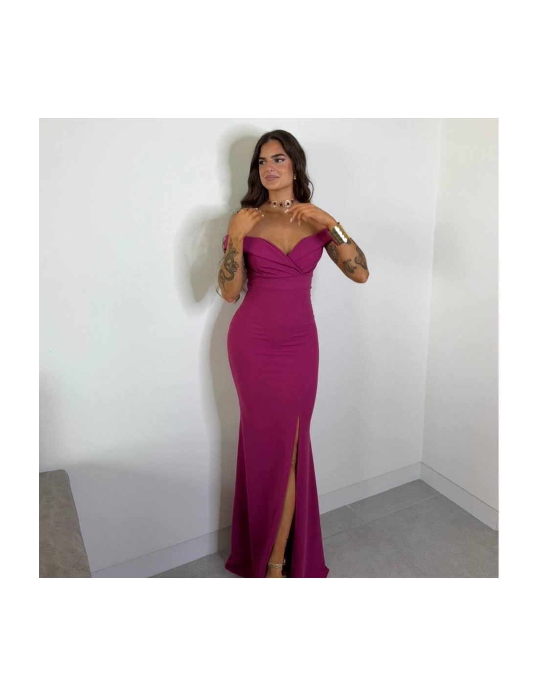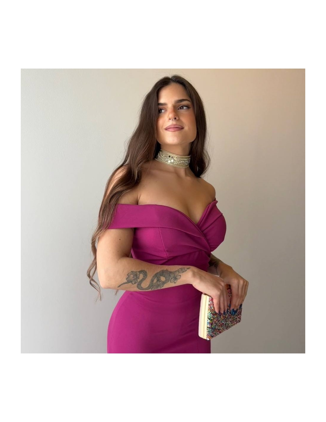 VESTIDO ESCOTE BARCO MAGENTA