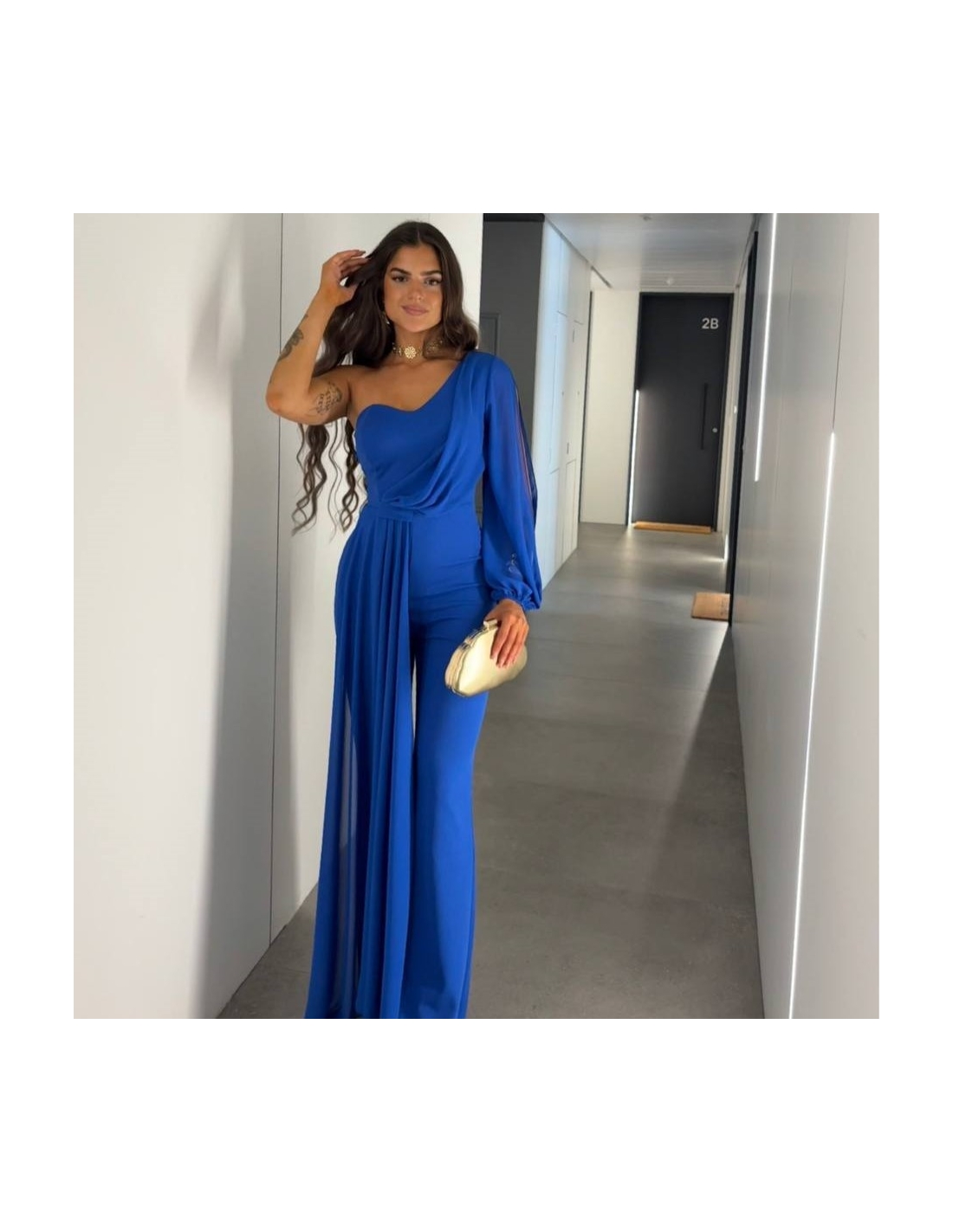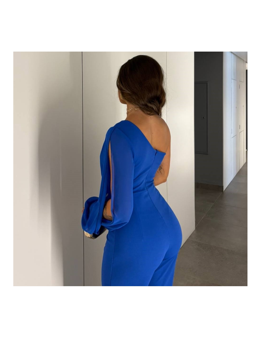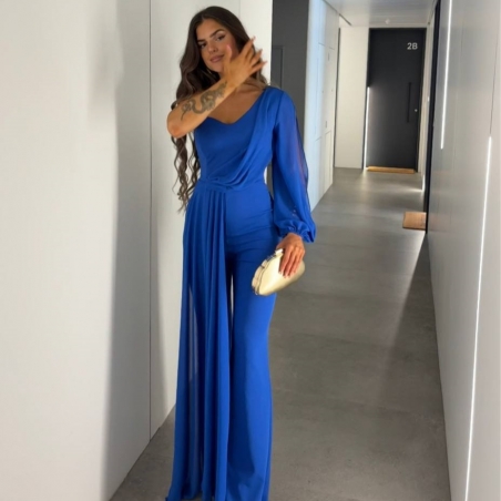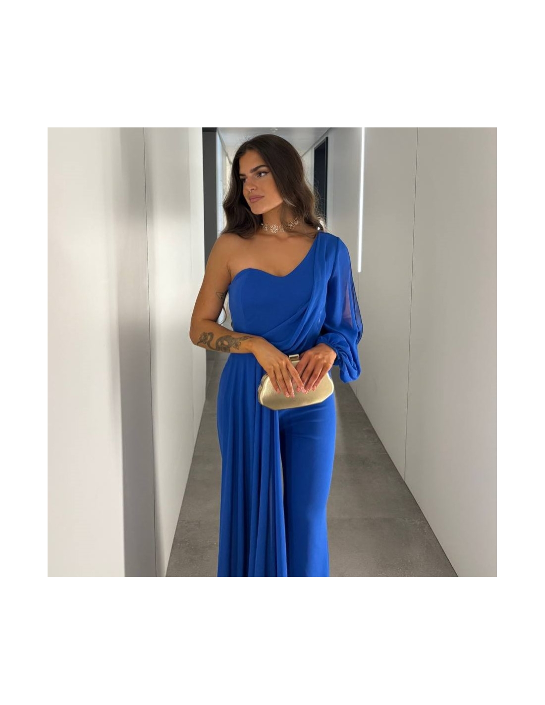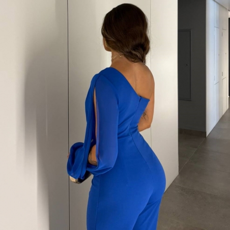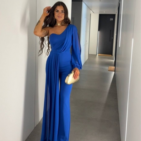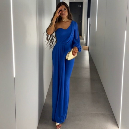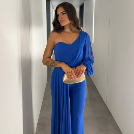 Mono gasa asimétrico en tono. Nudo en parte delantera. Casco incorporado en el pecho. Cierre trasero con cremallera oculta. Talla única