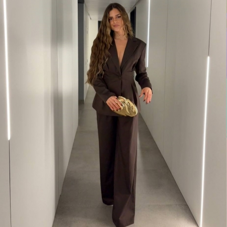 Conjunto traje dos piezas blazer con hombreras y pinzas entallada en la cintura y abotonada + pantalón de tiro alto y cintura elástica. Talla única. CALIDAD +++++