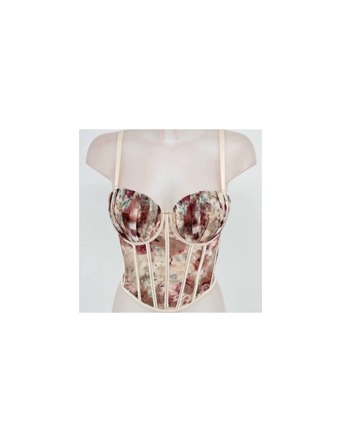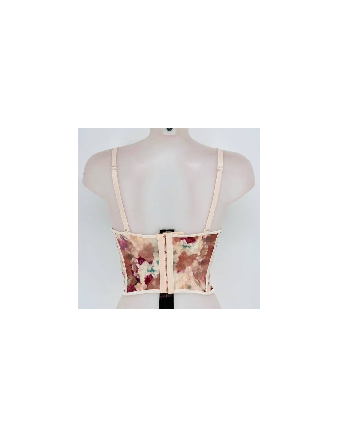 Corset tul estampado. Varillas. Tiranta regulable opcional. Corchetes en parte trasera regulables. Talla única.
