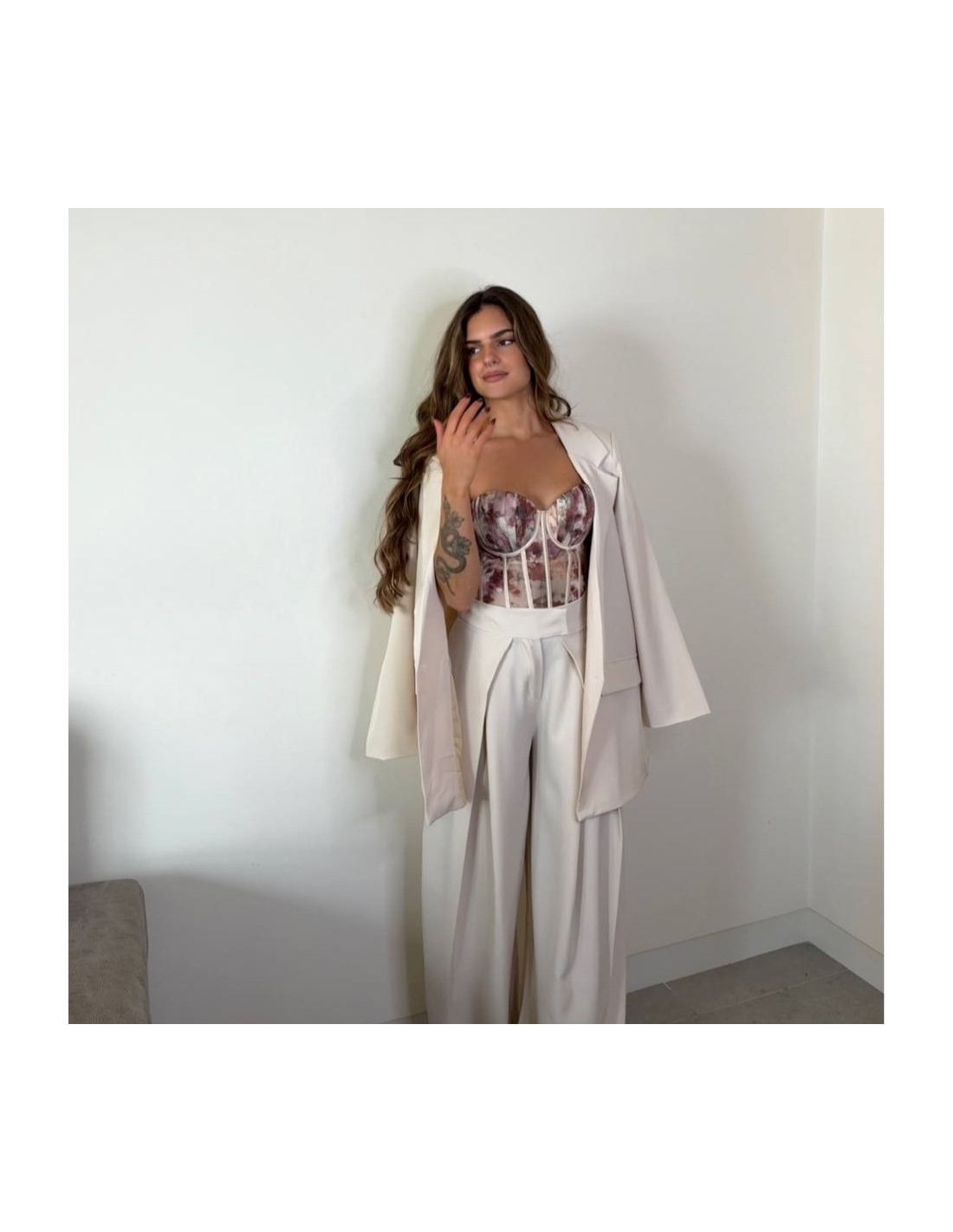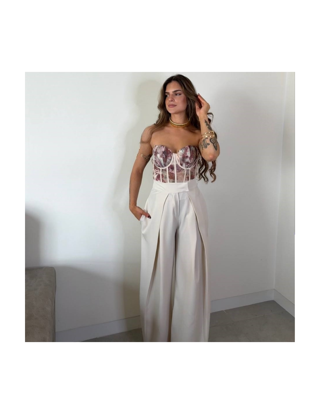 Pantalón fluido de tiro alto. Cierre delantero con botón y cremallera oculta. Cintura elástica. Talla única