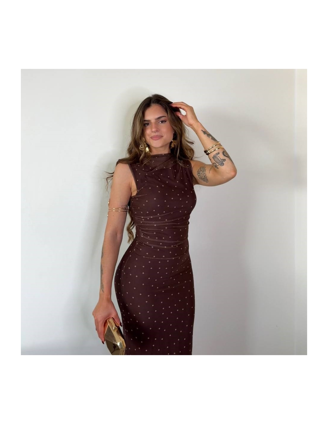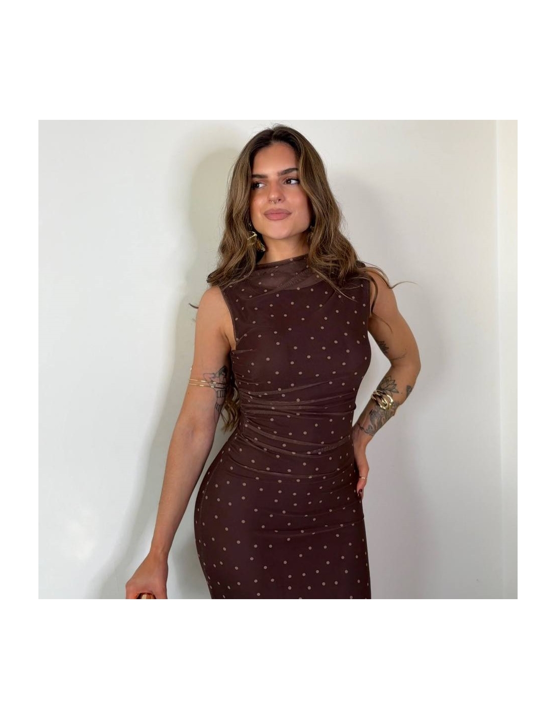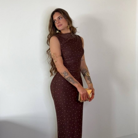 Vestido largo ajustado fruncido de tul con forro interior a tono. Elástico. Talla única