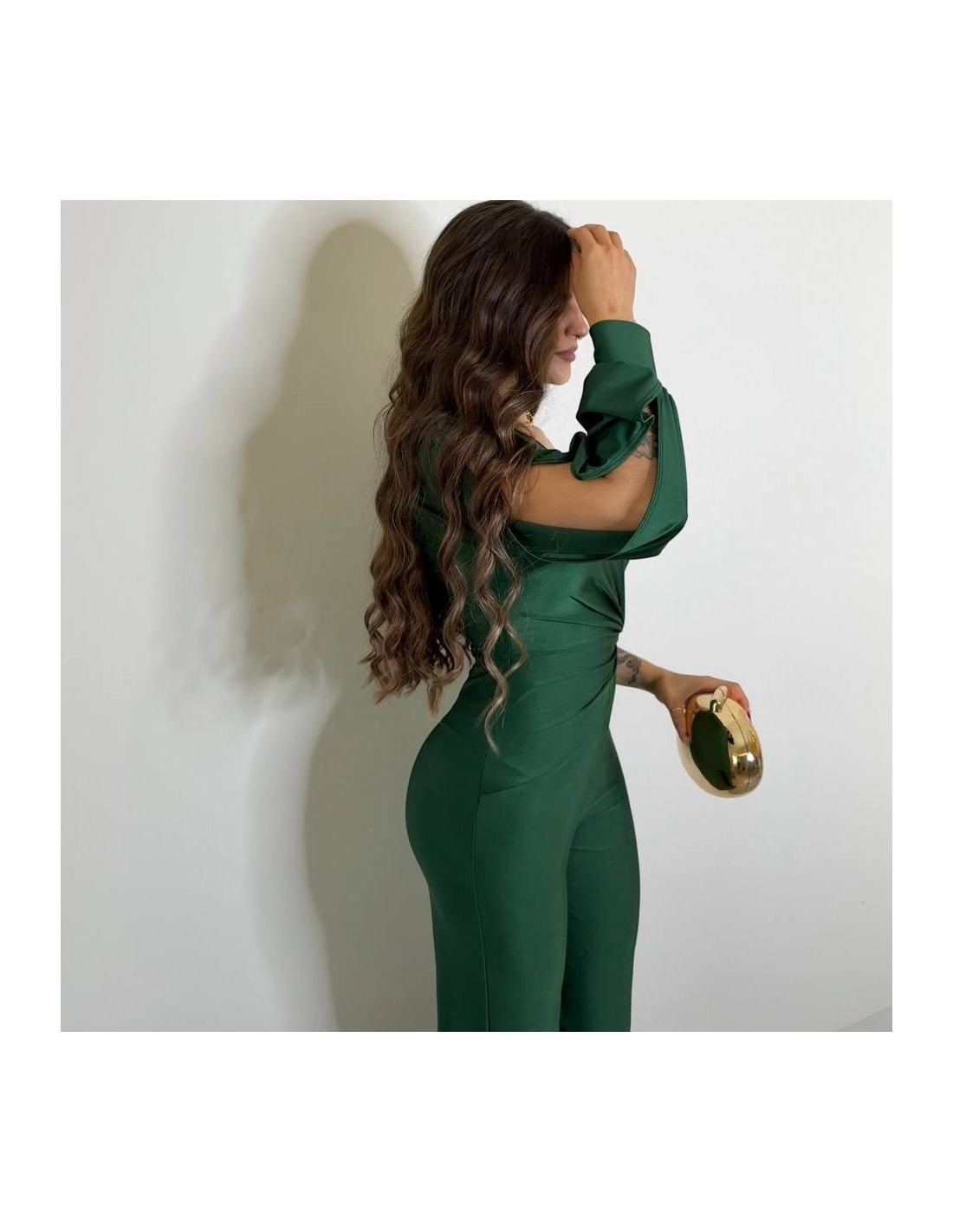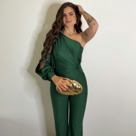 Mono asimétrico nudo. Tejido acabado satinado elástico. Abertura en manga. Cierre trasero con cremallera oculta. Talla única.
