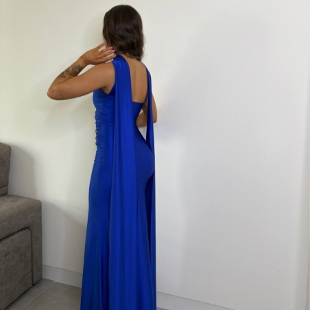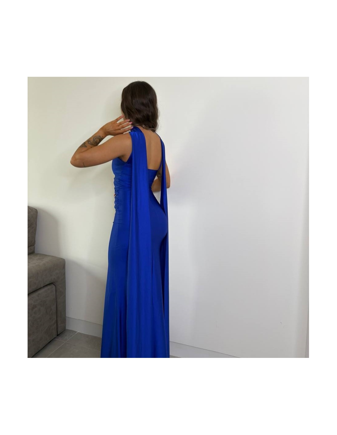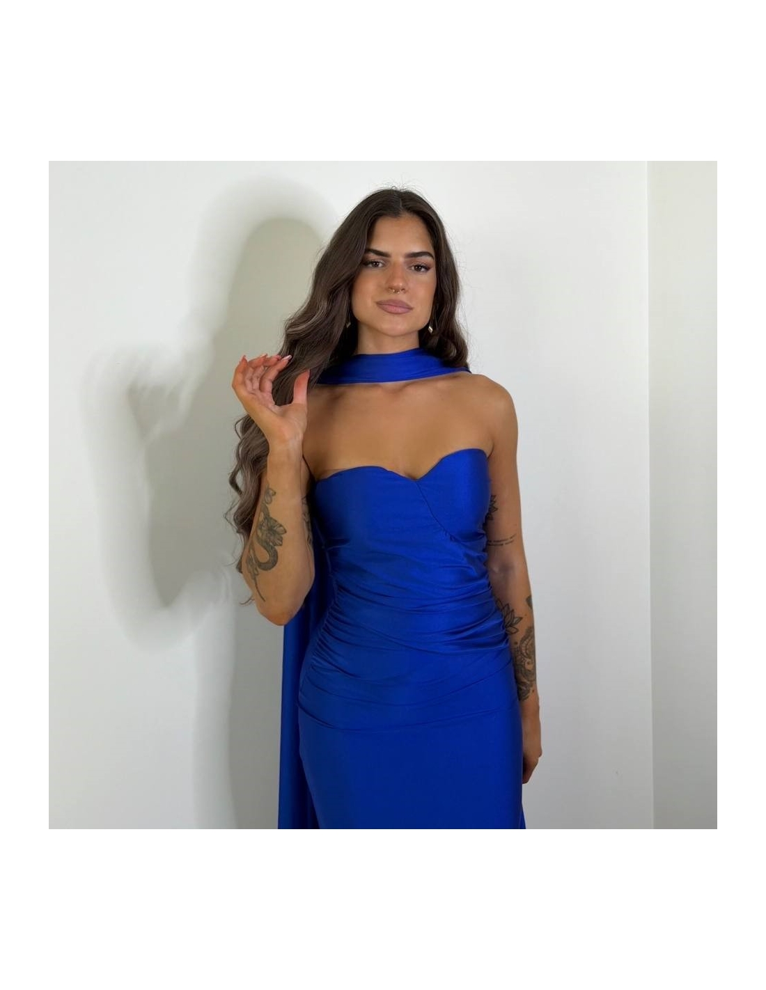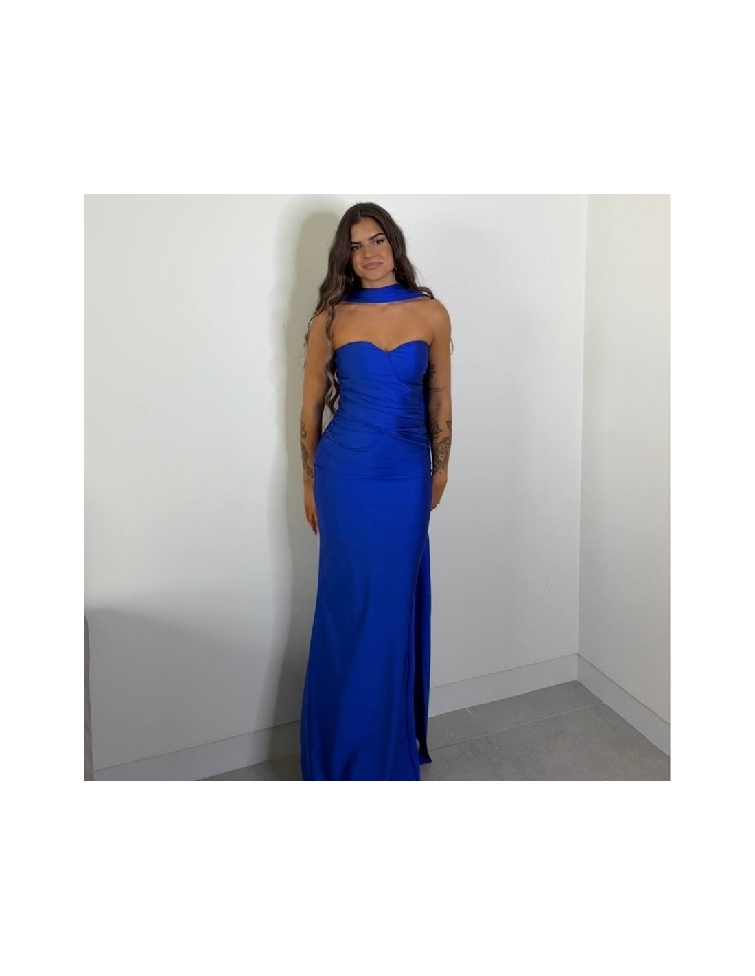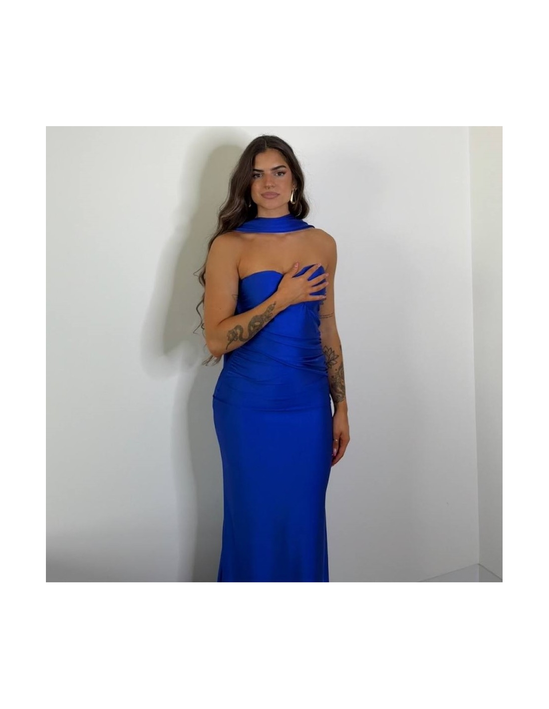 Vestido gargantilla de palabra de honor. Fruncido delantero. Talla única.
