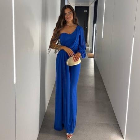 Mono gasa asimétrico en tono. Nudo en parte delantera. Casco incorporado en el pecho. Cierre trasero con cremallera oculta. Talla única