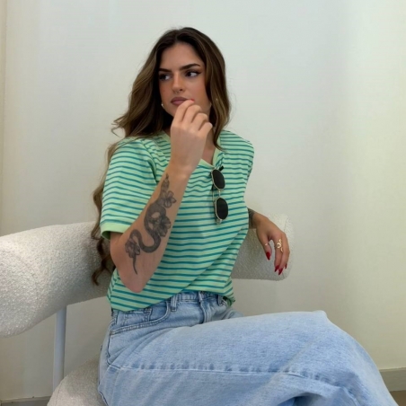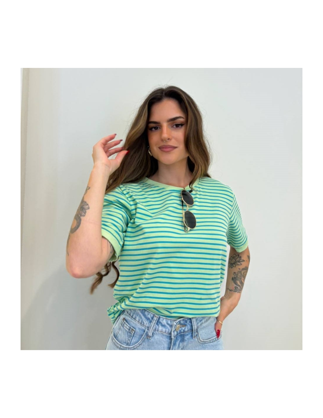 Camiseta de rayas de manga corta. Cuello redondo. Elástica. Talla única