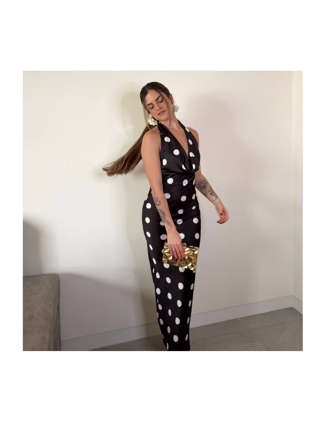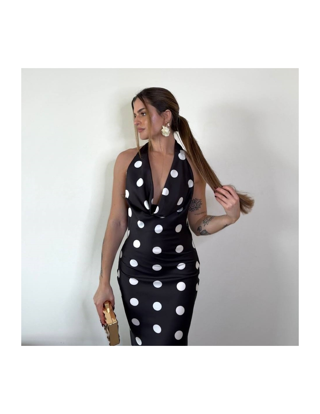 VESTIDO ESCOTE FLUIDO LUNARES NEGRO