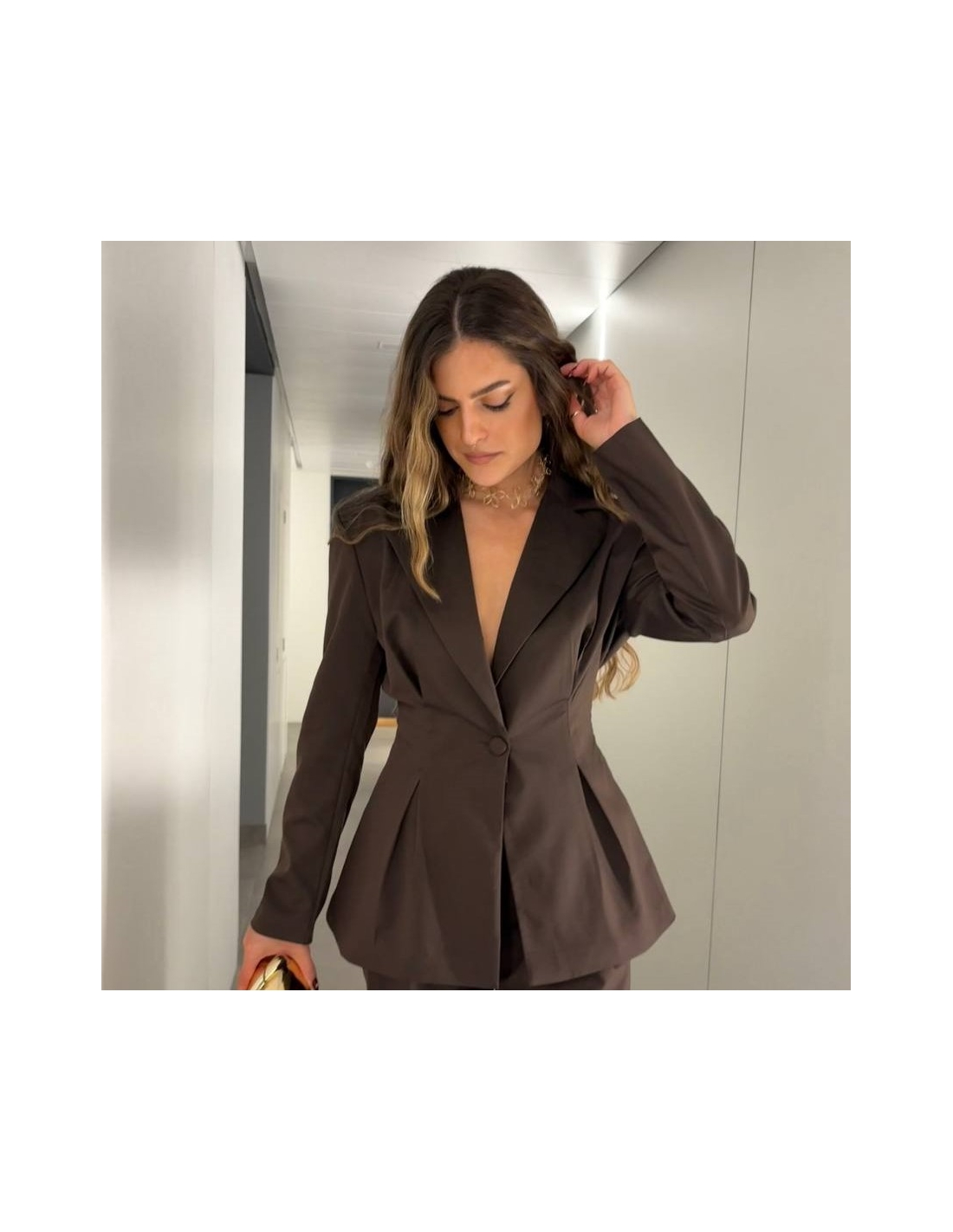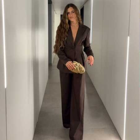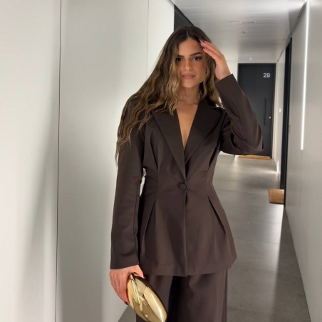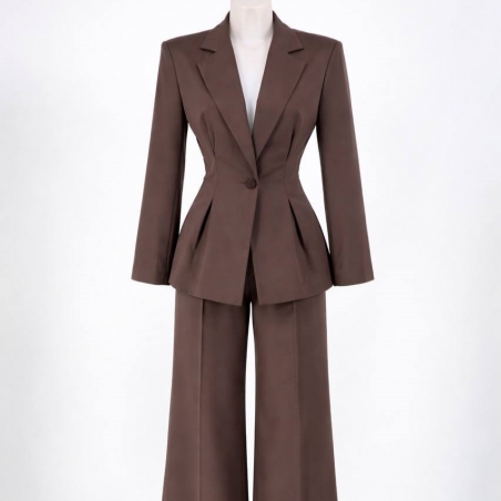 Conjunto traje dos piezas blazer con hombreras y pinzas entallada en la cintura y abotonada + pantalón de tiro alto y cintura elástica. Talla única. CALIDAD +++++