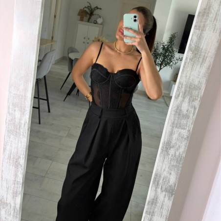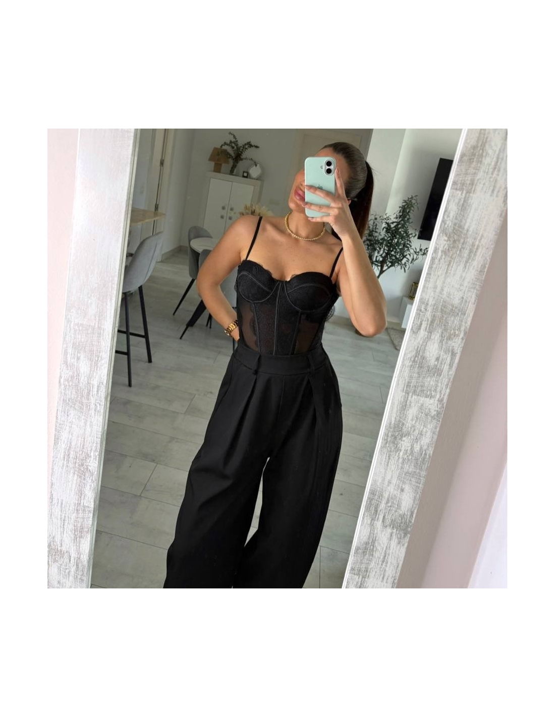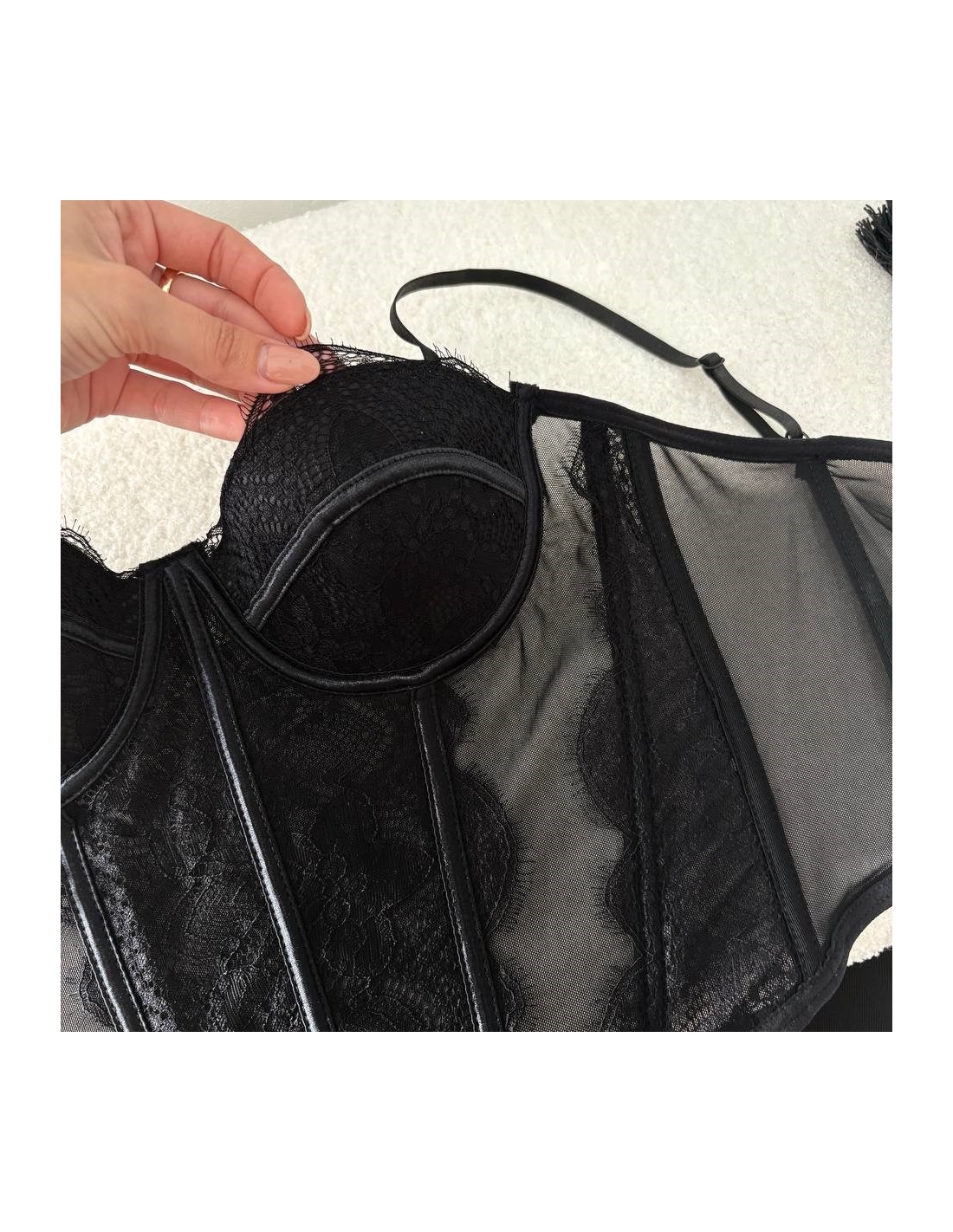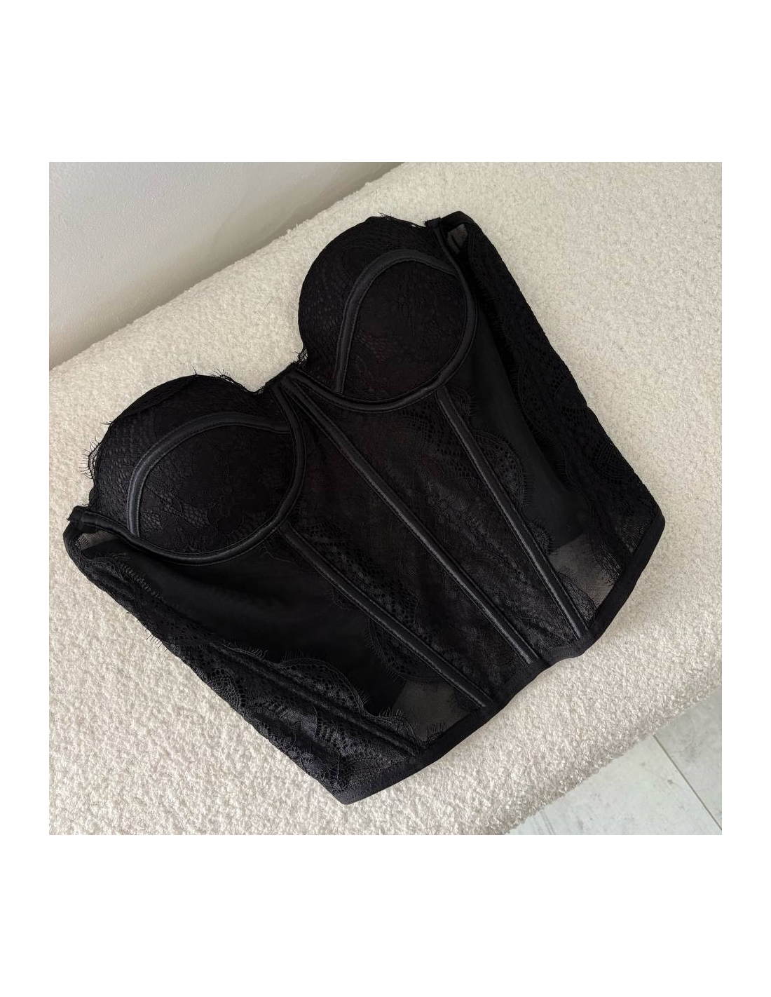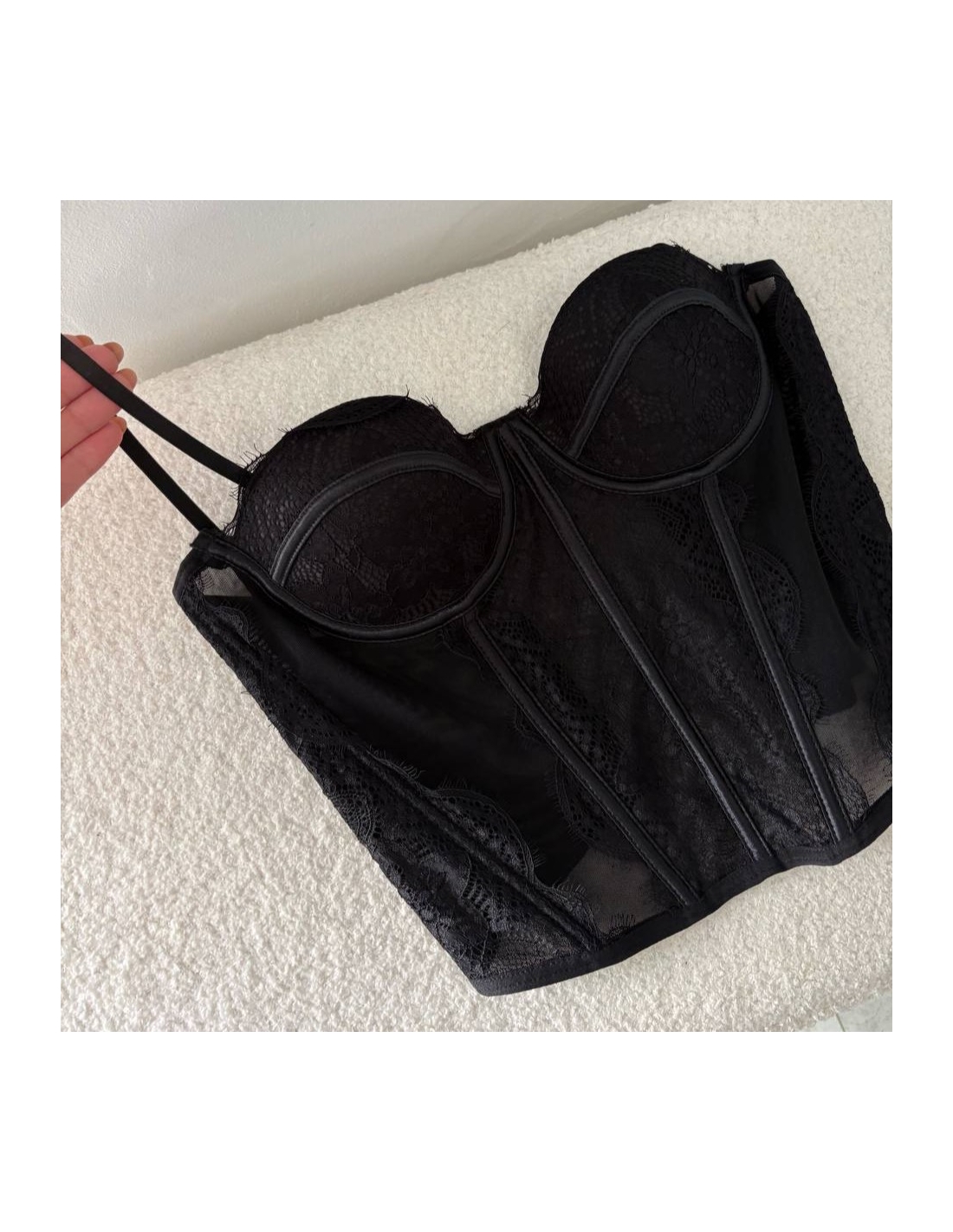 Corset encaje con tiranta regulable. Cierre trasero con corchetes ajustables. Talla única.